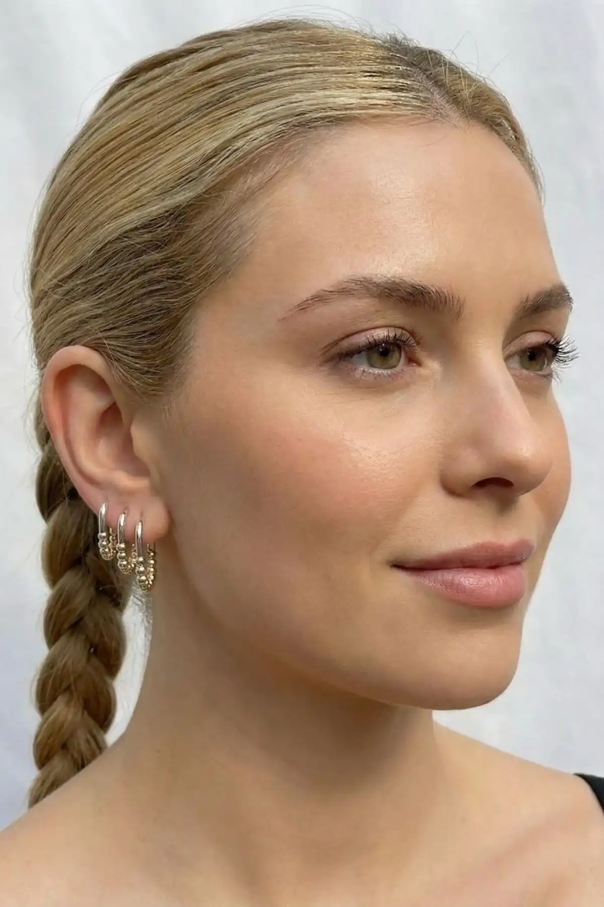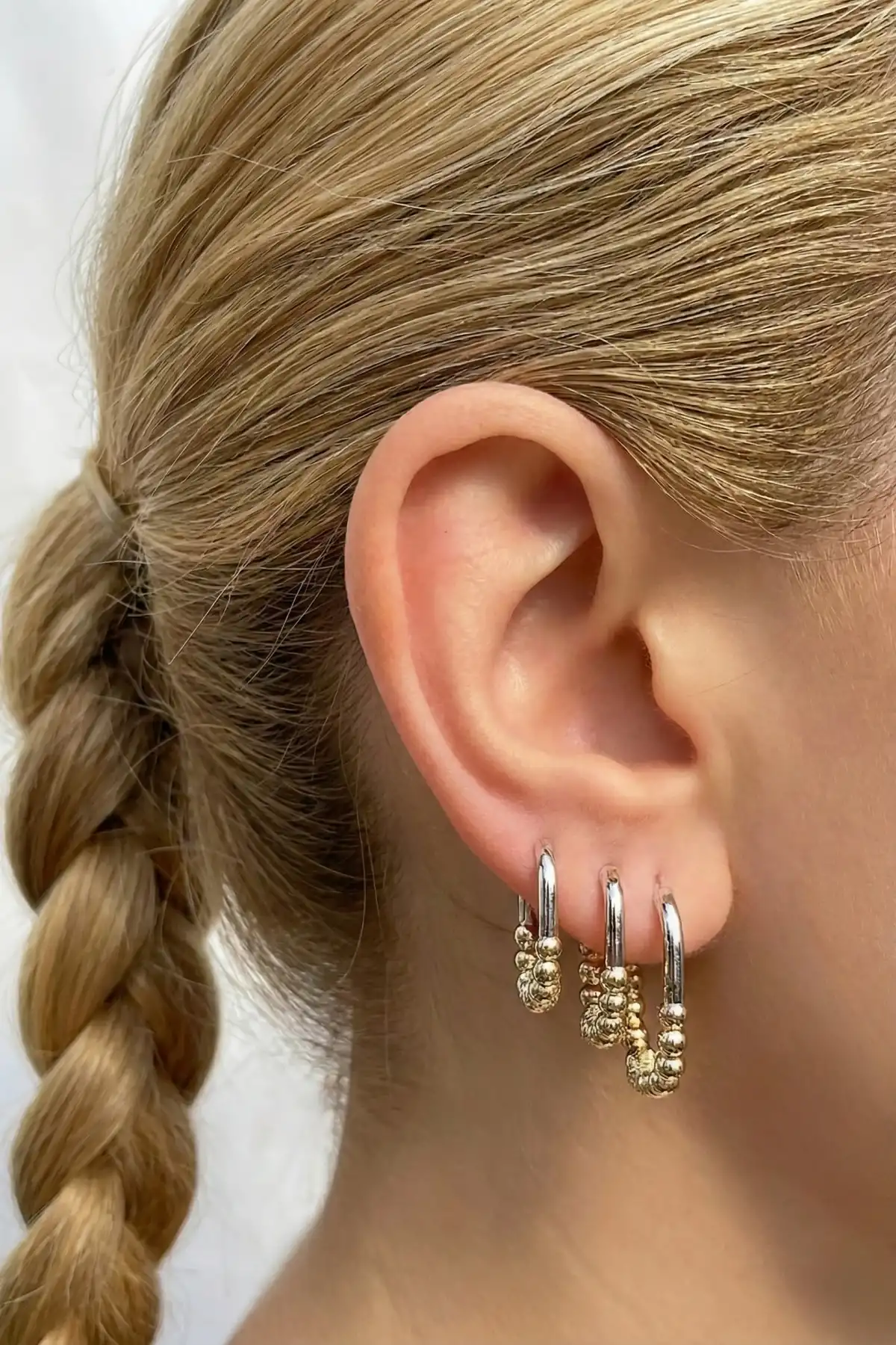 YSX 14K Altın Kaplama Minimal Top Detaylı Halka Küpe Seti
