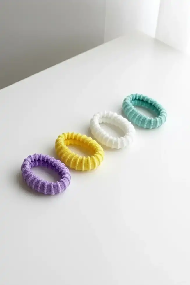 Yumuşak kumaş dokusuna sahip bu 4’lü lastik toka seti, gün boyu rahat kullanım sunar;
