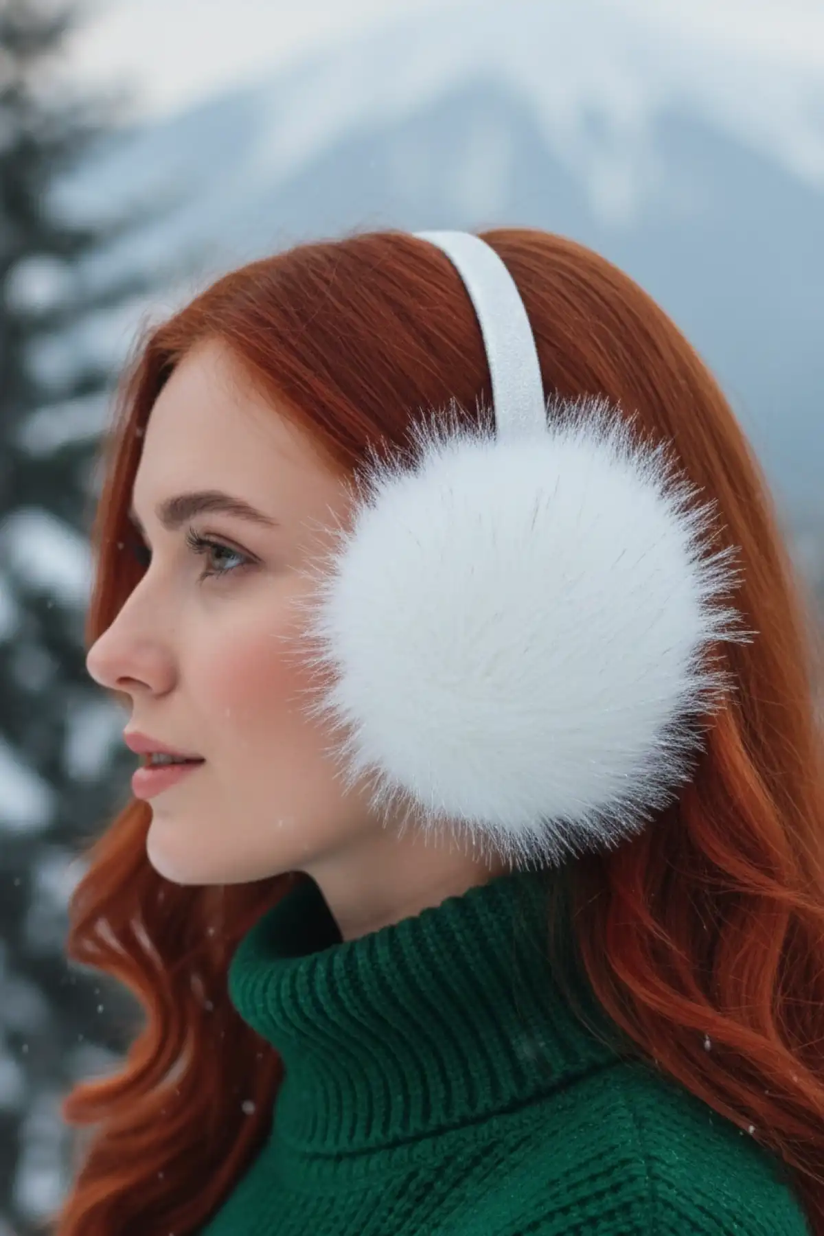 Beyaz Peluş Kulaklık – Yumuşak Sıcak Tutma Şık Kışlık Kulak Koruyucu