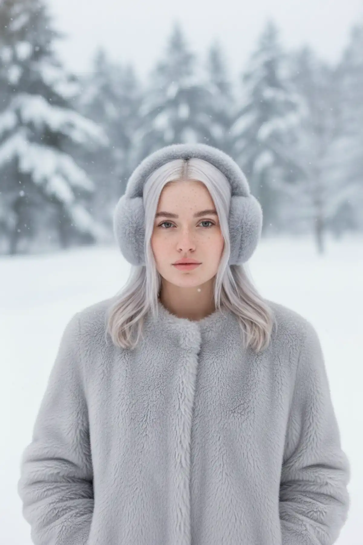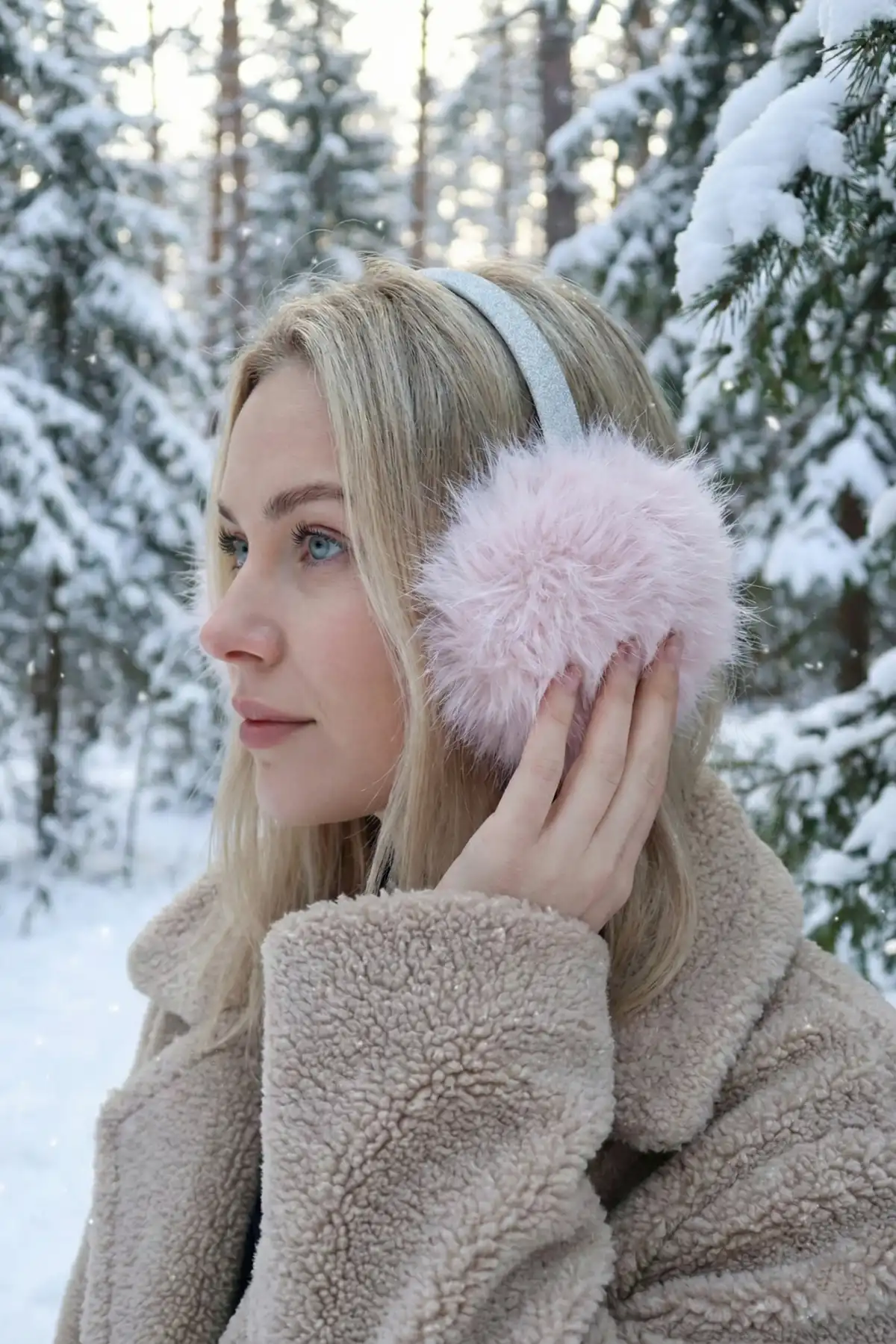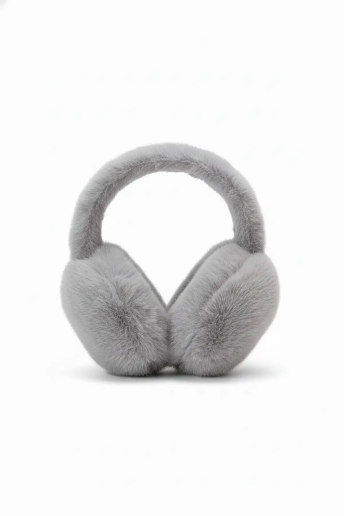Kadın Gri Peluş Kulaklık – Yumuşak Kışlık Kulak Isıtıcı, Soğuk Geçirmez