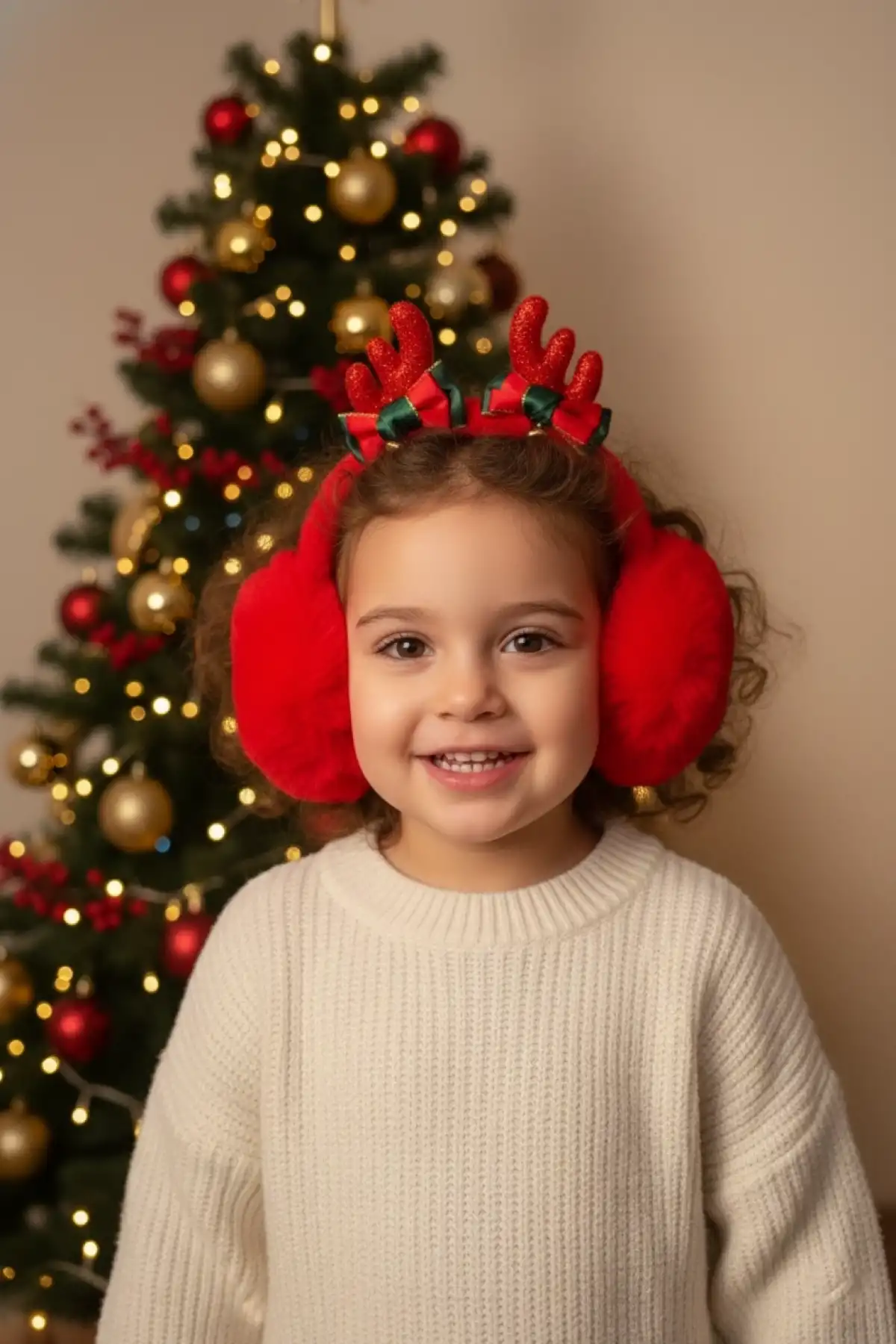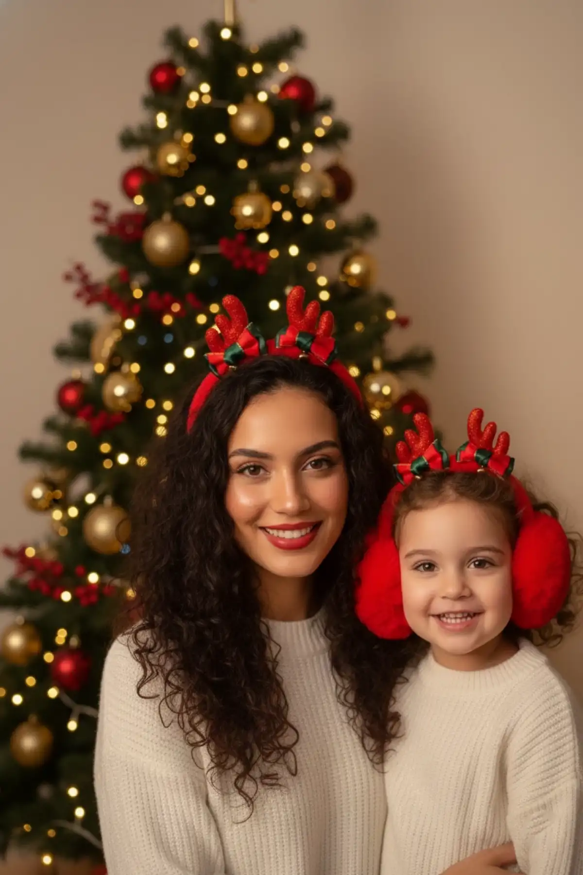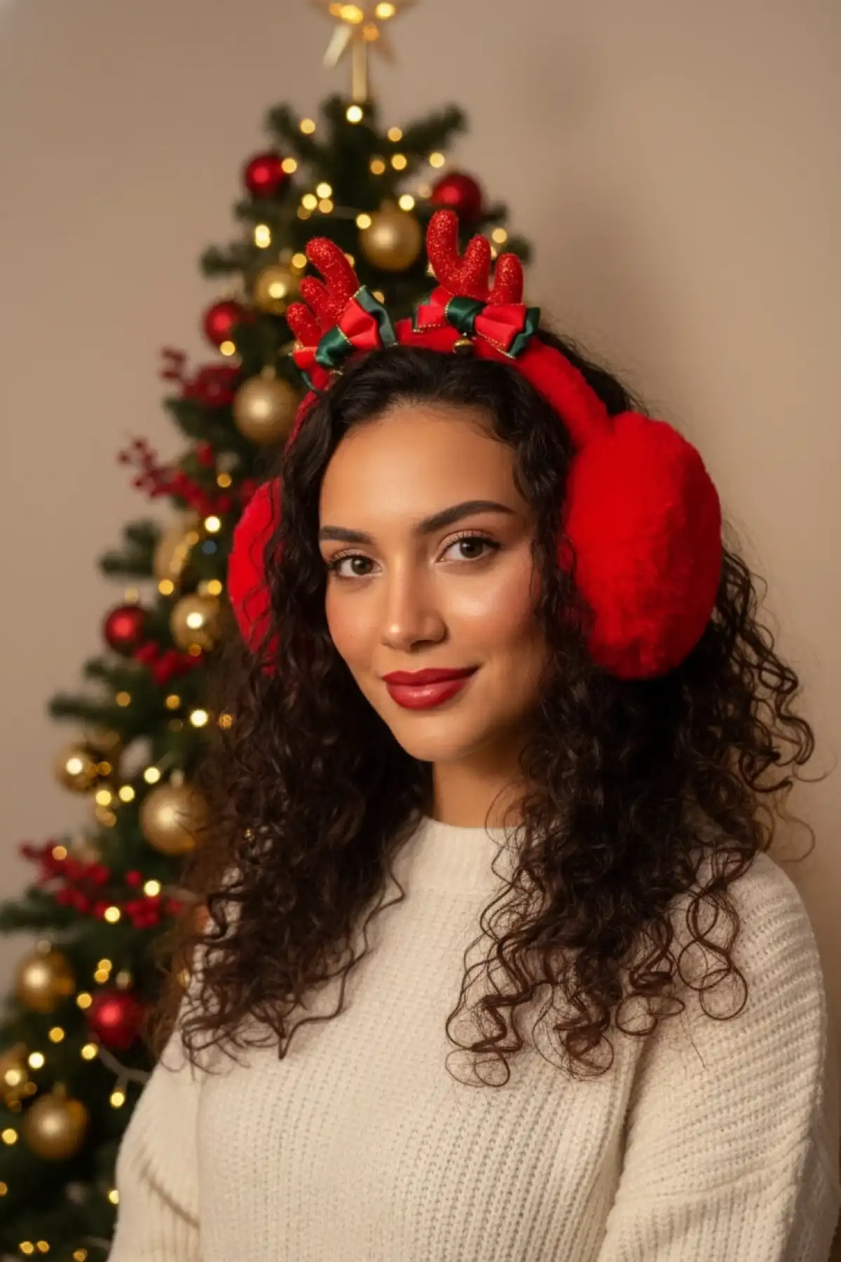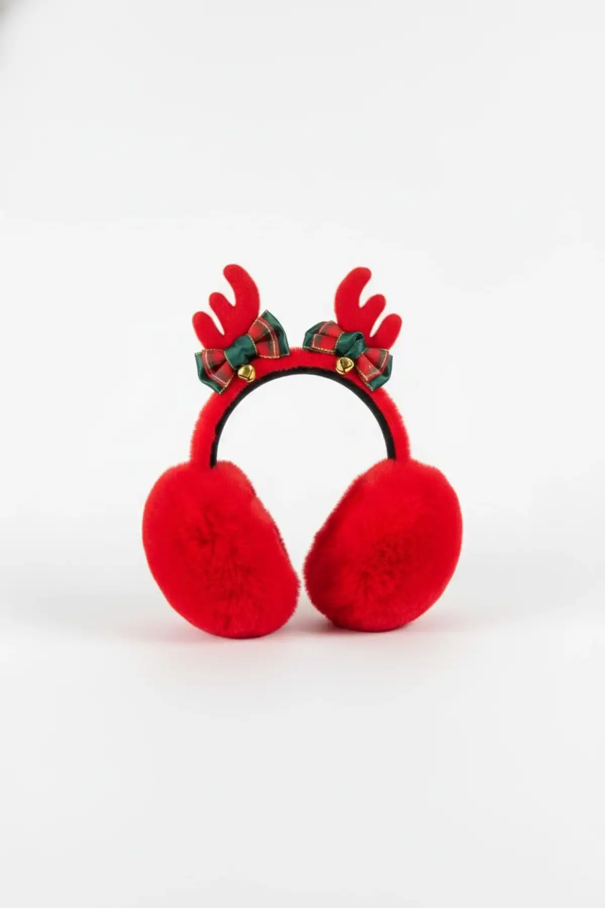 Kadın Kırmızı Geyik Boynuzlu Peluş Kulaklık – Yılbaşı Temalı Kışlık Kulak Isıtıcı – Yılbaşı Aksesuar – Christmas Aksesuar