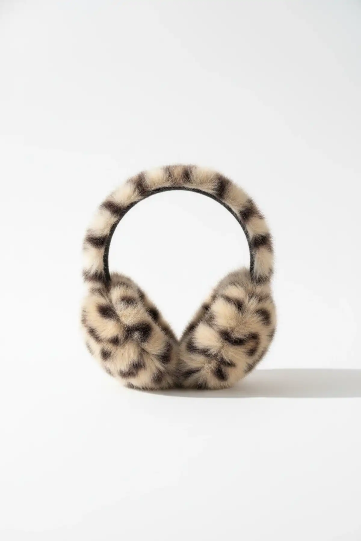Kadın Leopar Desenli Yapay Kürk Peluş Kulaklık – Soğuk Geçirmez, Yumuşak Kışlık Kulak Isıtıcı