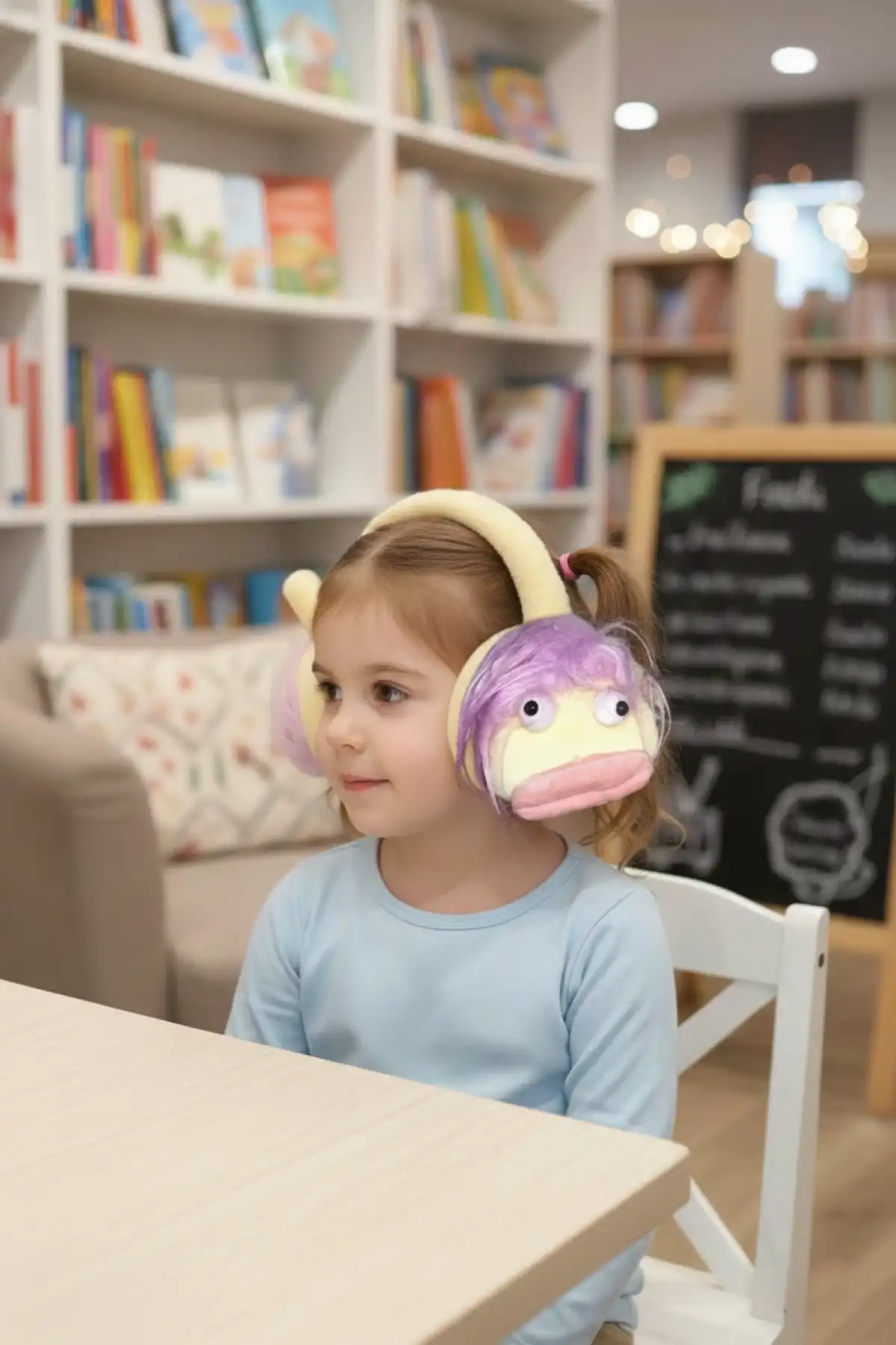Mor Saçlı Sevimli Canavar Figürlü Peluş Kulaklık Kulak Isıtıcı – Yumuşak Kışlık Aksesuar