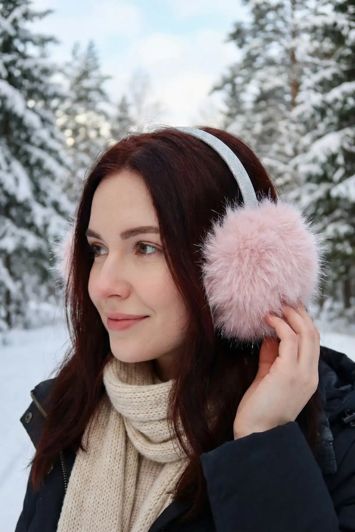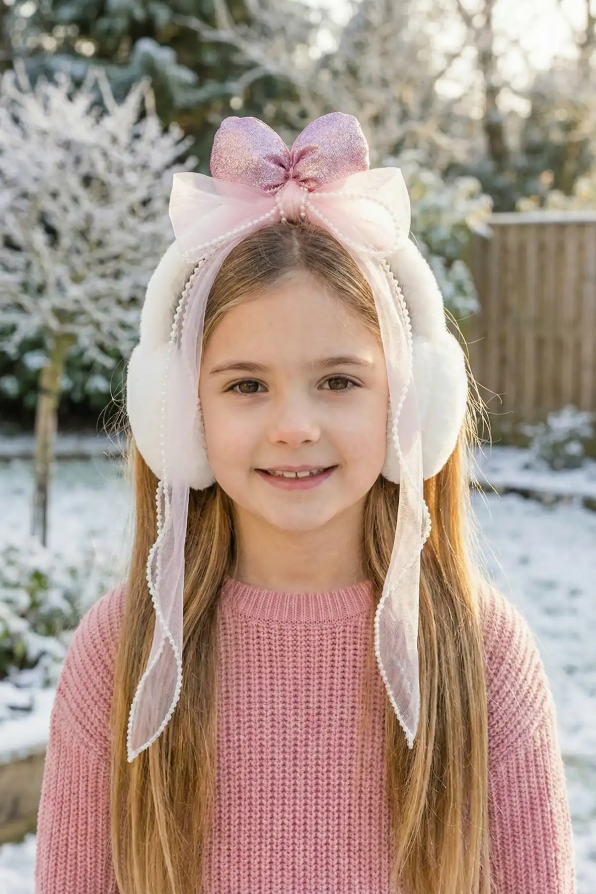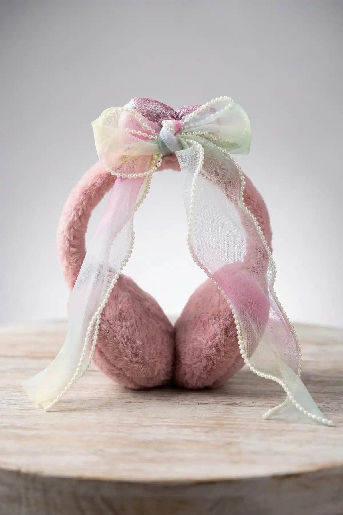 Fiyonklu Peluş Çocuk Kulaklık – Yumuşak Peluş, Kışlık Sıcak Tutma, Şık Kulak Koruyucu