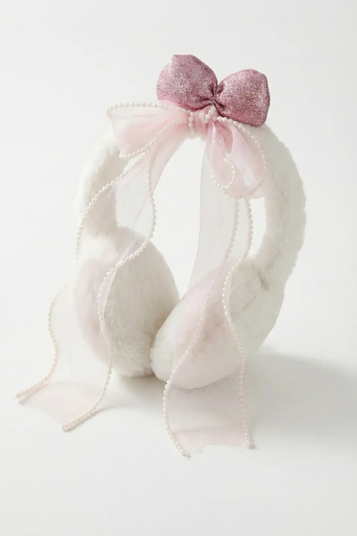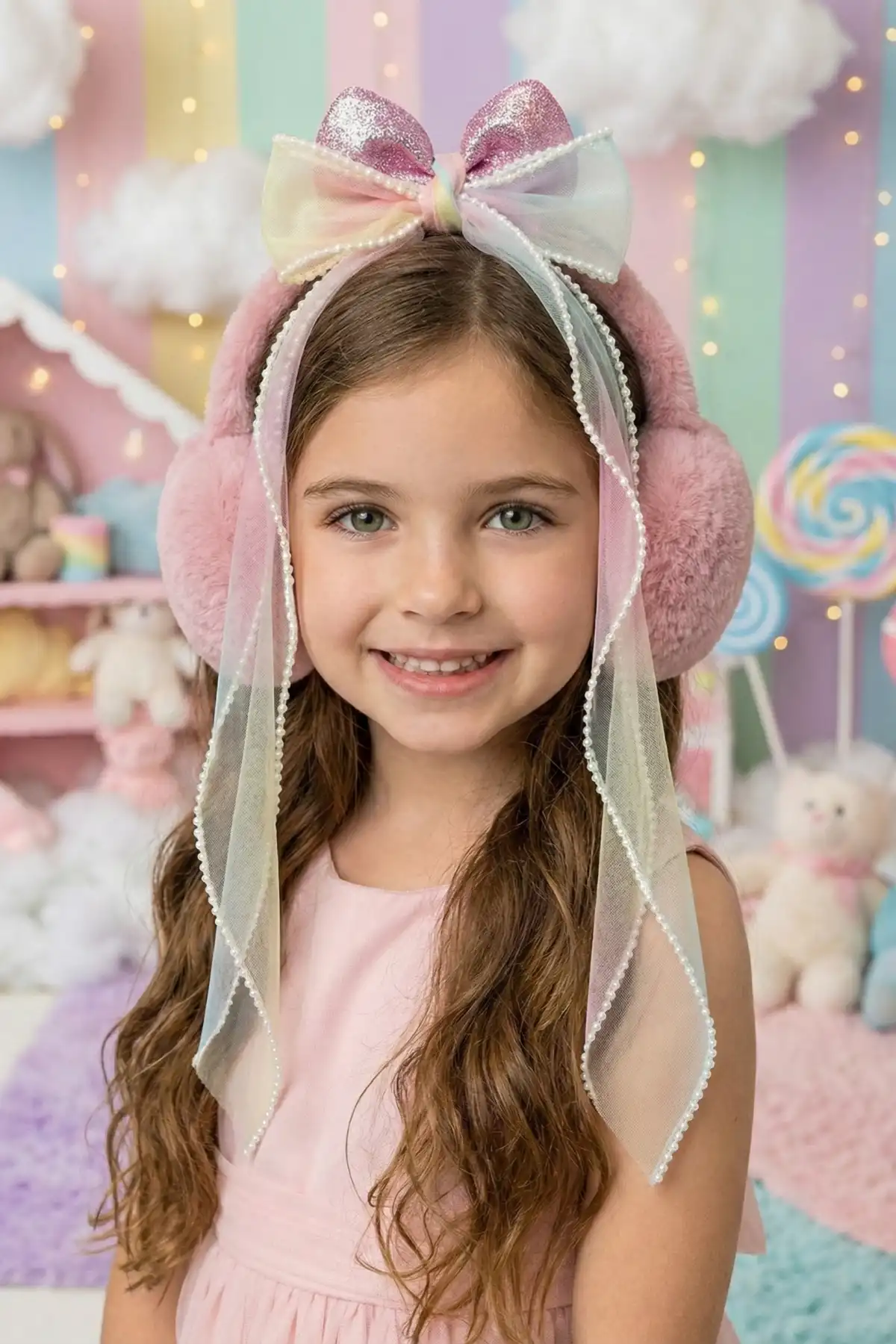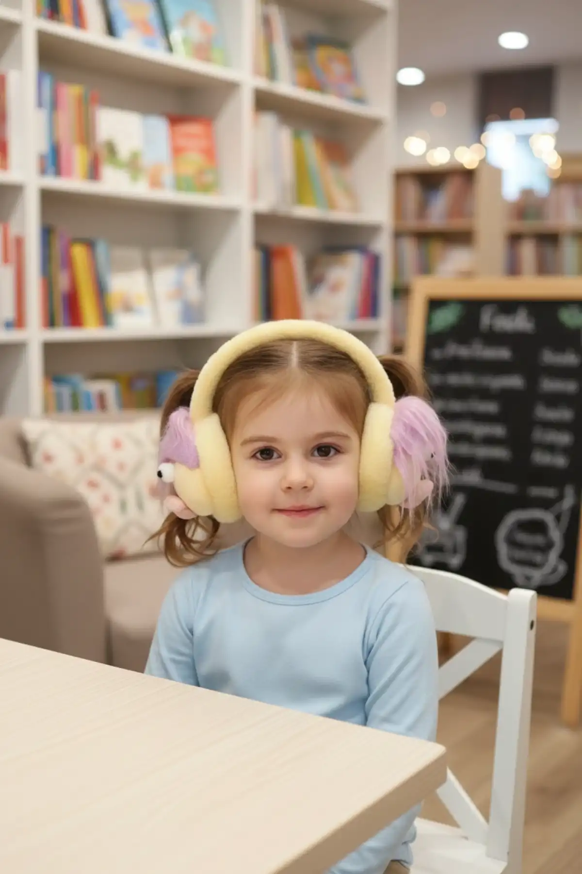 Fiyonklu Peluş Çocuk Kulaklık – Yumuşak Peluş, Kışlık Sıcak Tutma, Şık Kulak Koruyucu