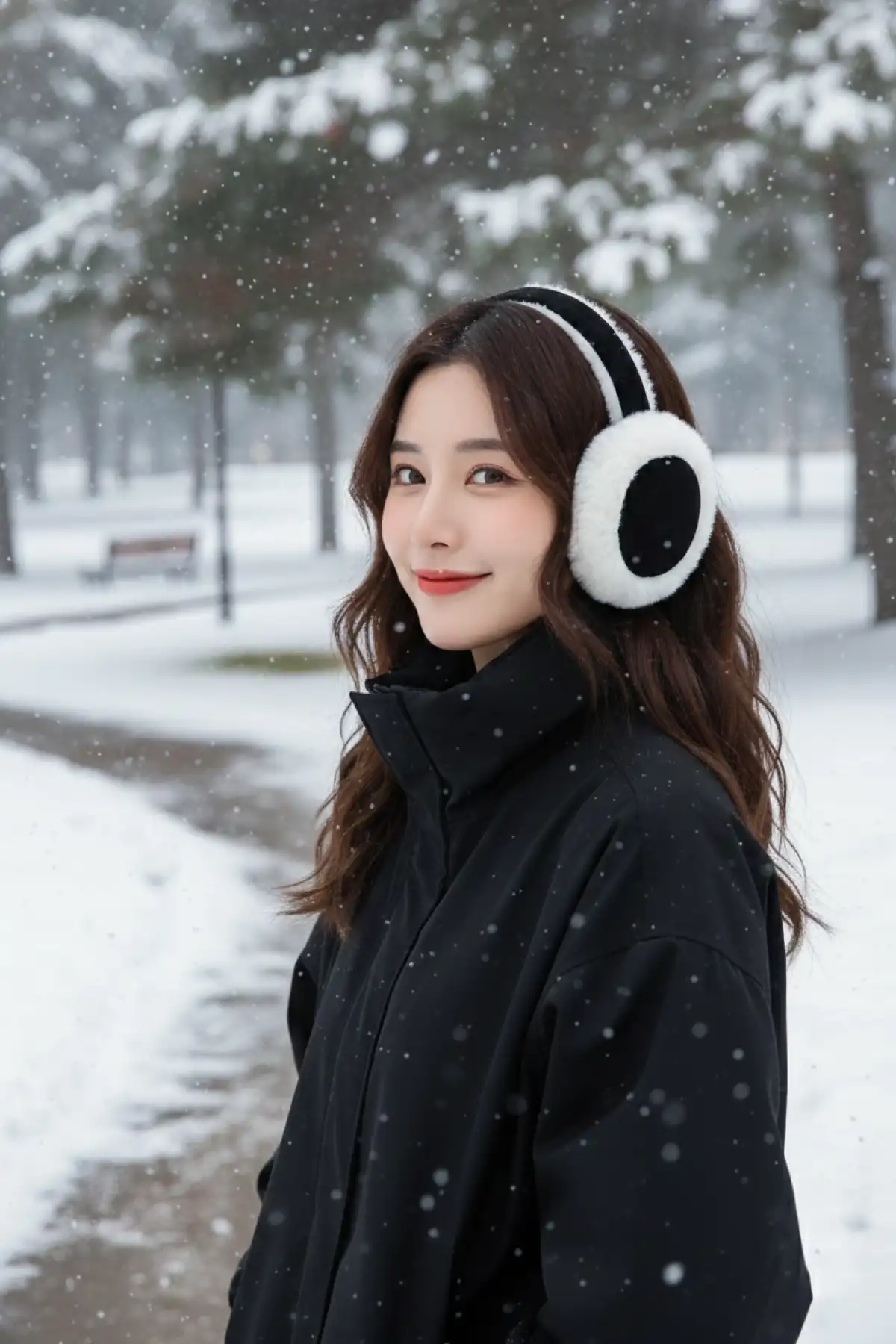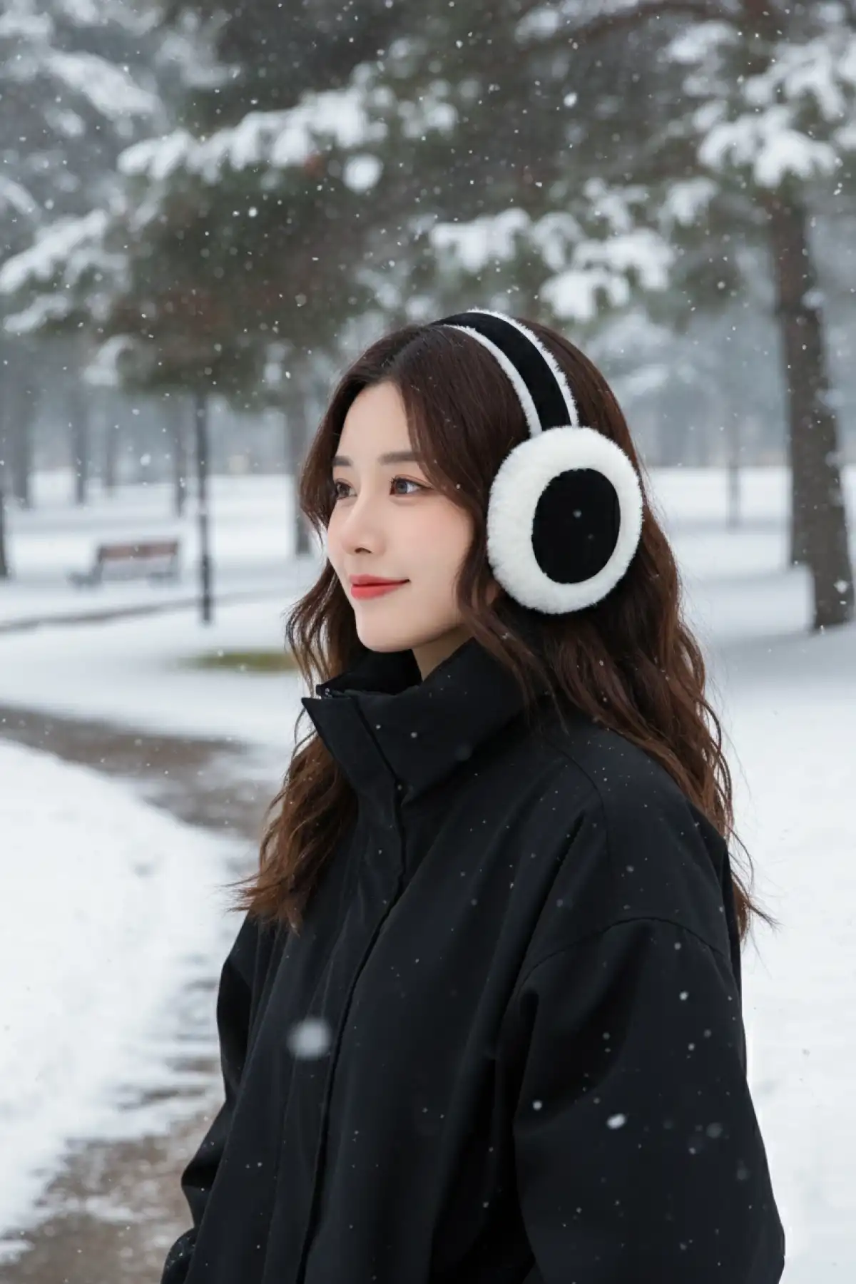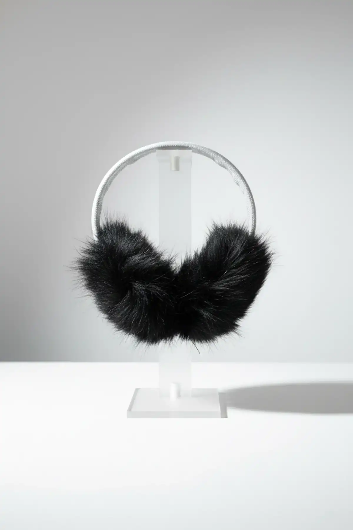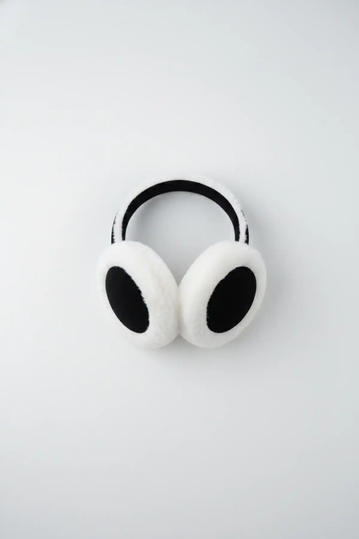 Siyah Beyaz Peluş Kulaklık – Kışlık Kulak Isıtıcı, Yumuşak Soğuk Geçirmez