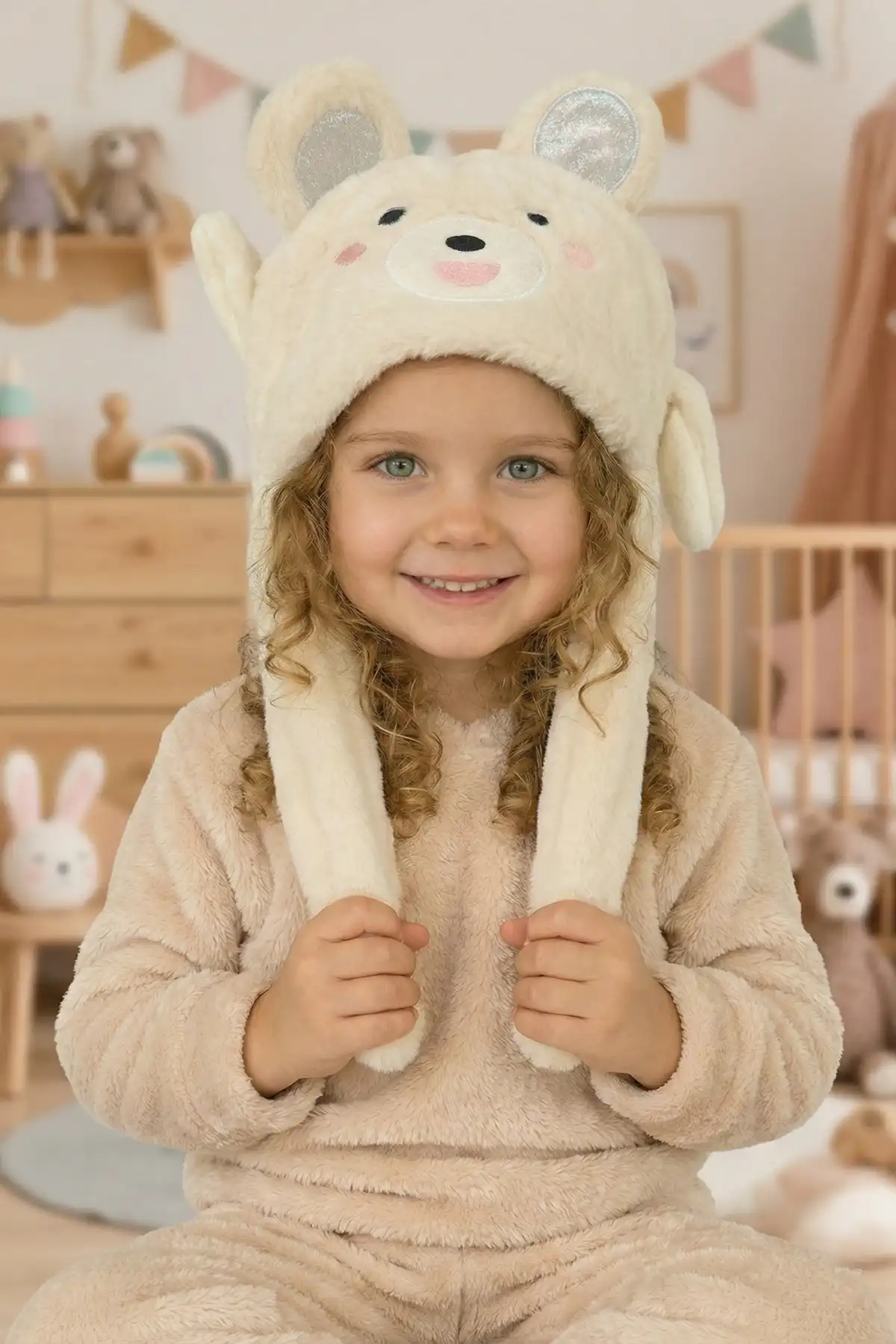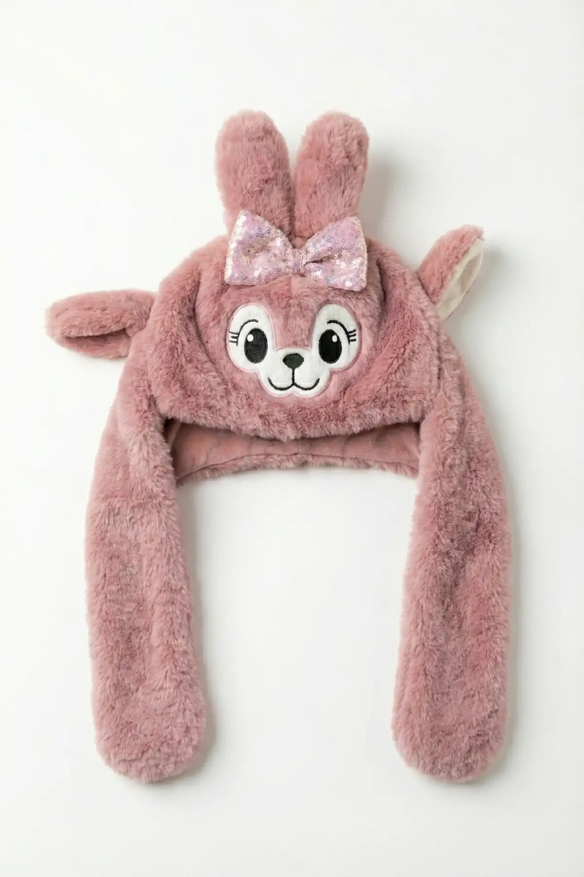 Kulakları Oynayan Peluş Tavşan Şapka – Kışlık, Yumuşak, Sıcak Tutan, Çocuk Şapkası