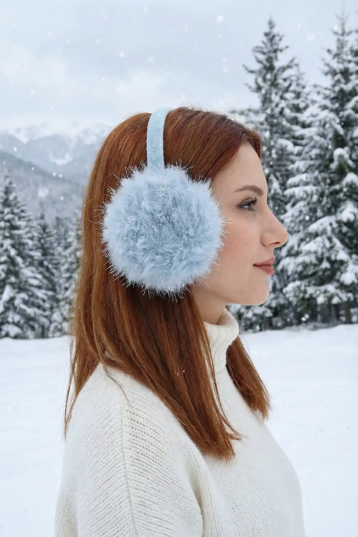 Mavi Peluş Kulaklık – Yumuşak Sıcak Tutma Şık Kışlık Kulak Koruyucu