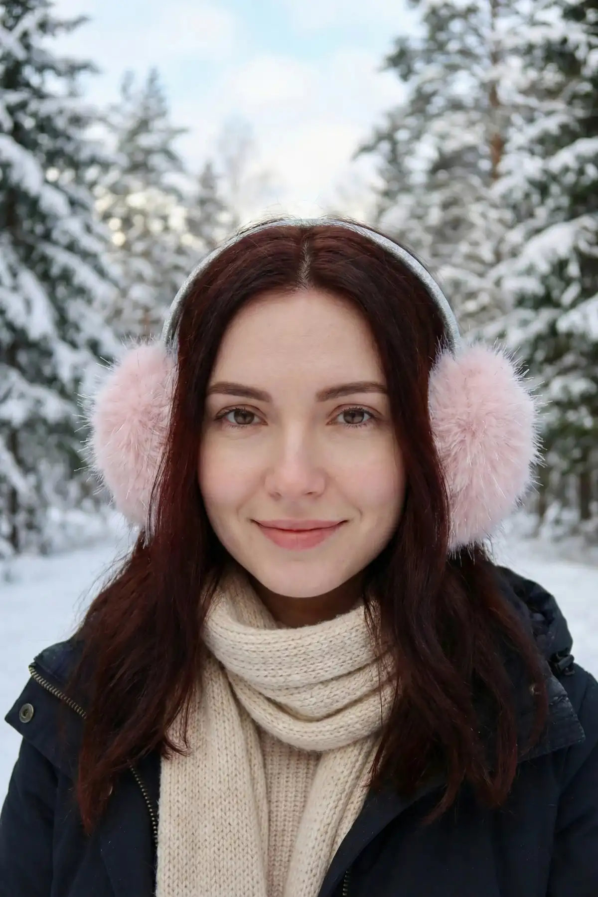 Kadın Kahverengi Krem Peluş Kulaklık – Yumuşacık Kışlık Kulak Isıtıcı, Soğuk Geçirmez
