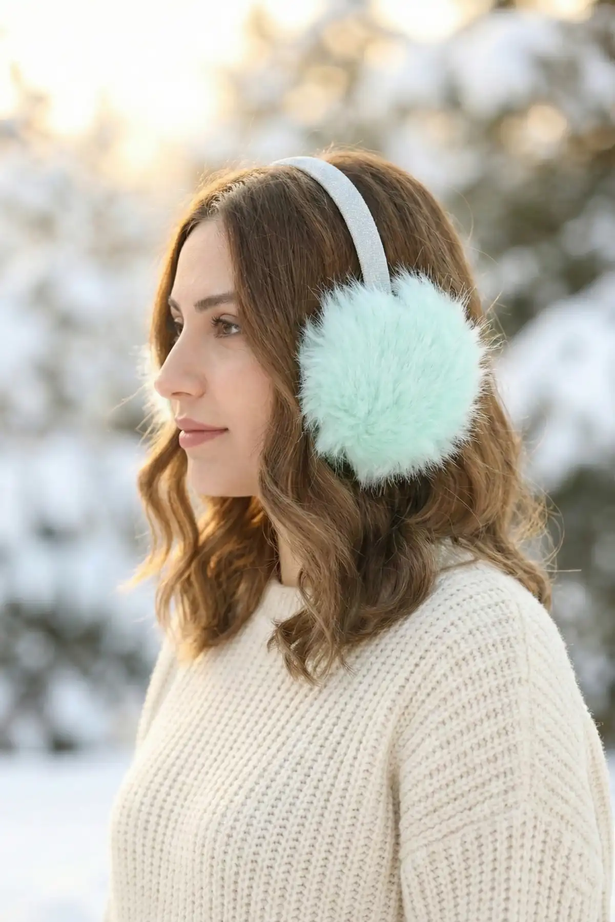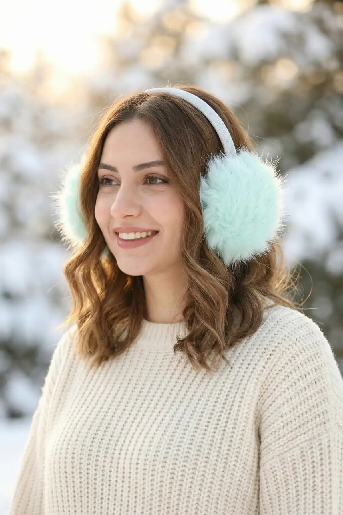 Su Yeşili Peluş Kulaklık – Kalın Peluş, Kışlık Sıcak Tutma, Yumuşak, Şık Kulak Koruyucu