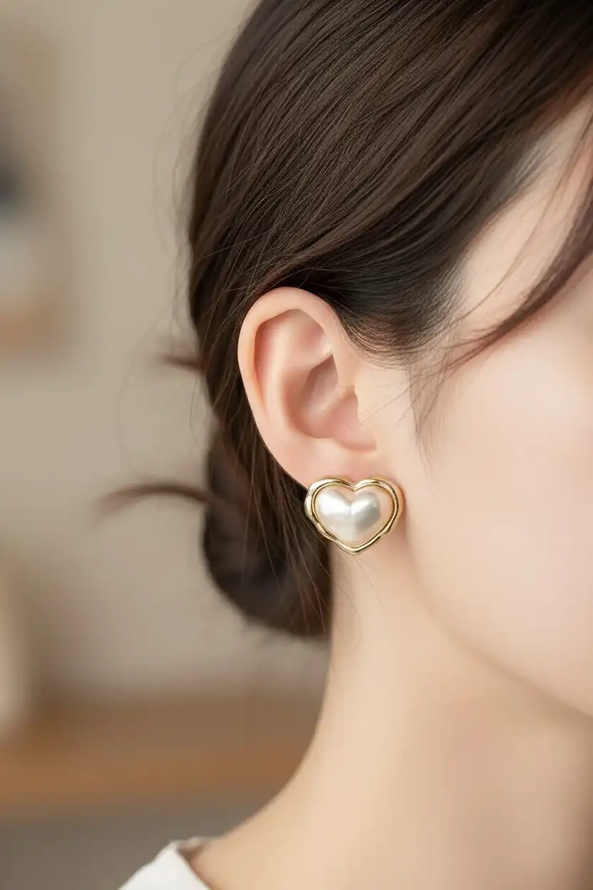 İnci detaylı kalp formu ile dikkat çekici bir aksesuardır;