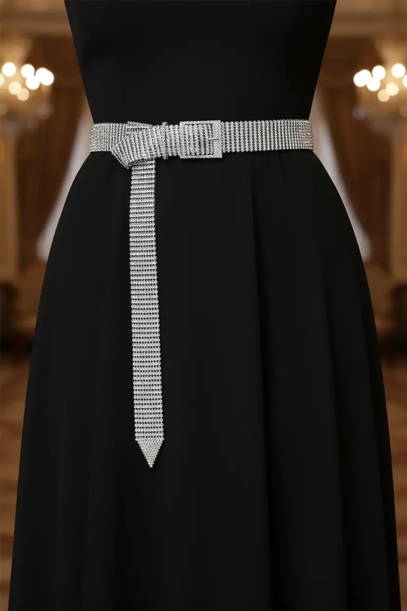 Bu ışıltılı taşlı abiye kemer, sade elbiselerinize zarif bir dokunuş katar;
