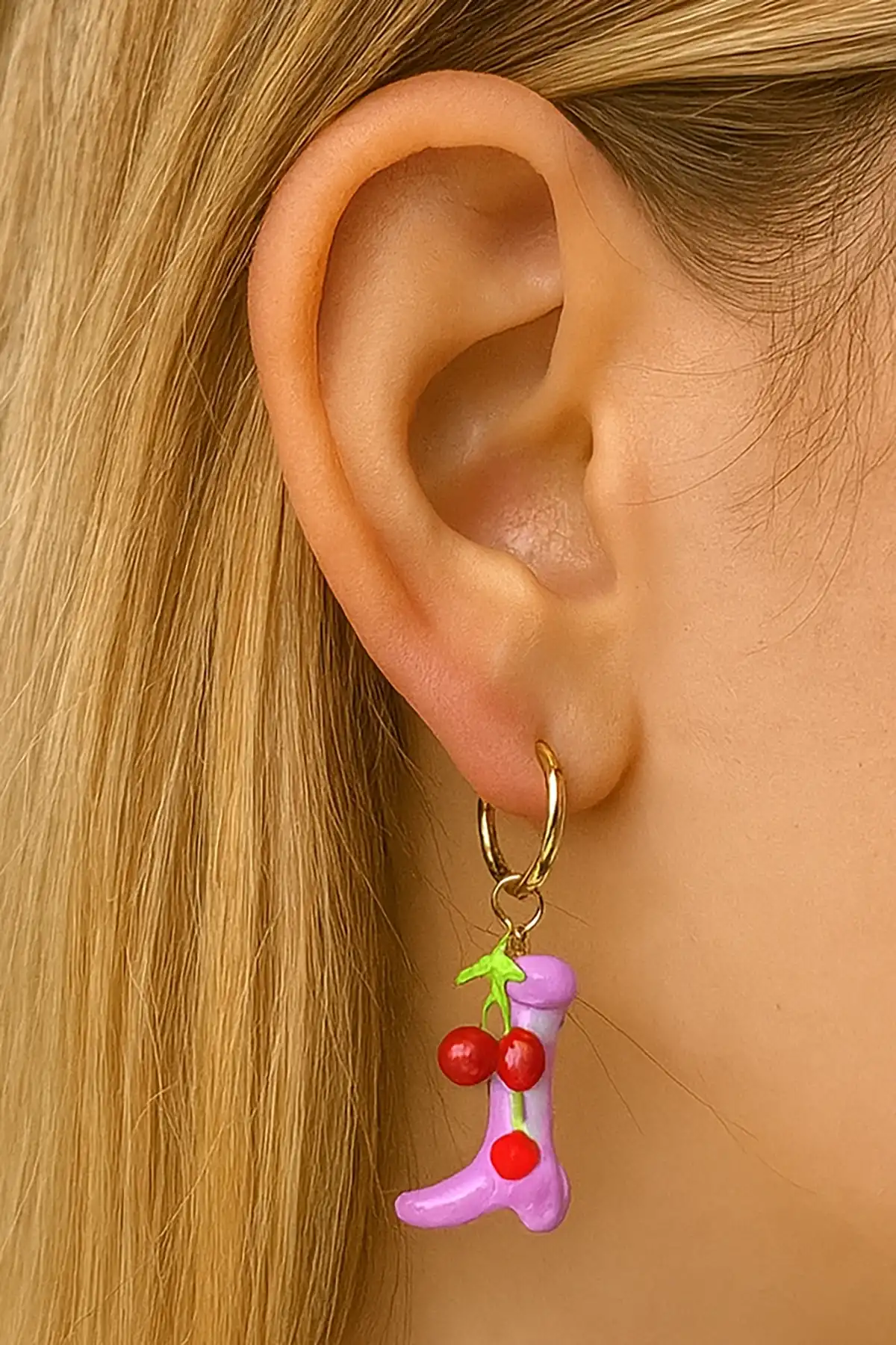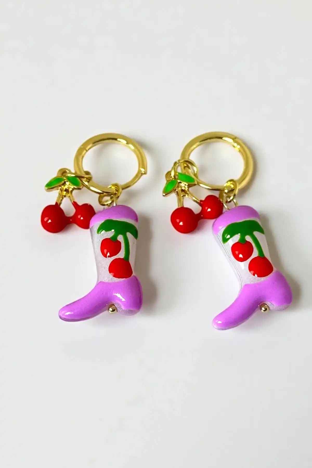 Kiraz Detaylı Cowboy Çizme Figürlü Renkli Paslanmaz Çelik Küpe