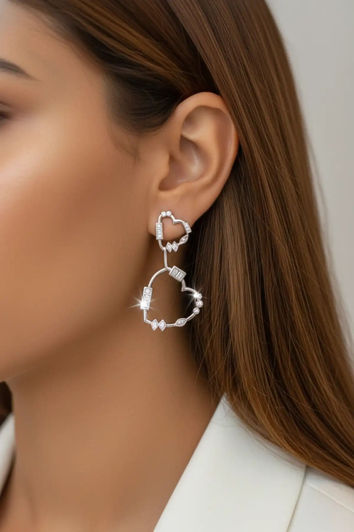 Beyaz Mineli Gümüş Renk Sallantılı Çelik Küpe – Kararmaz Paslanmaz Çelik Kadın Küpe