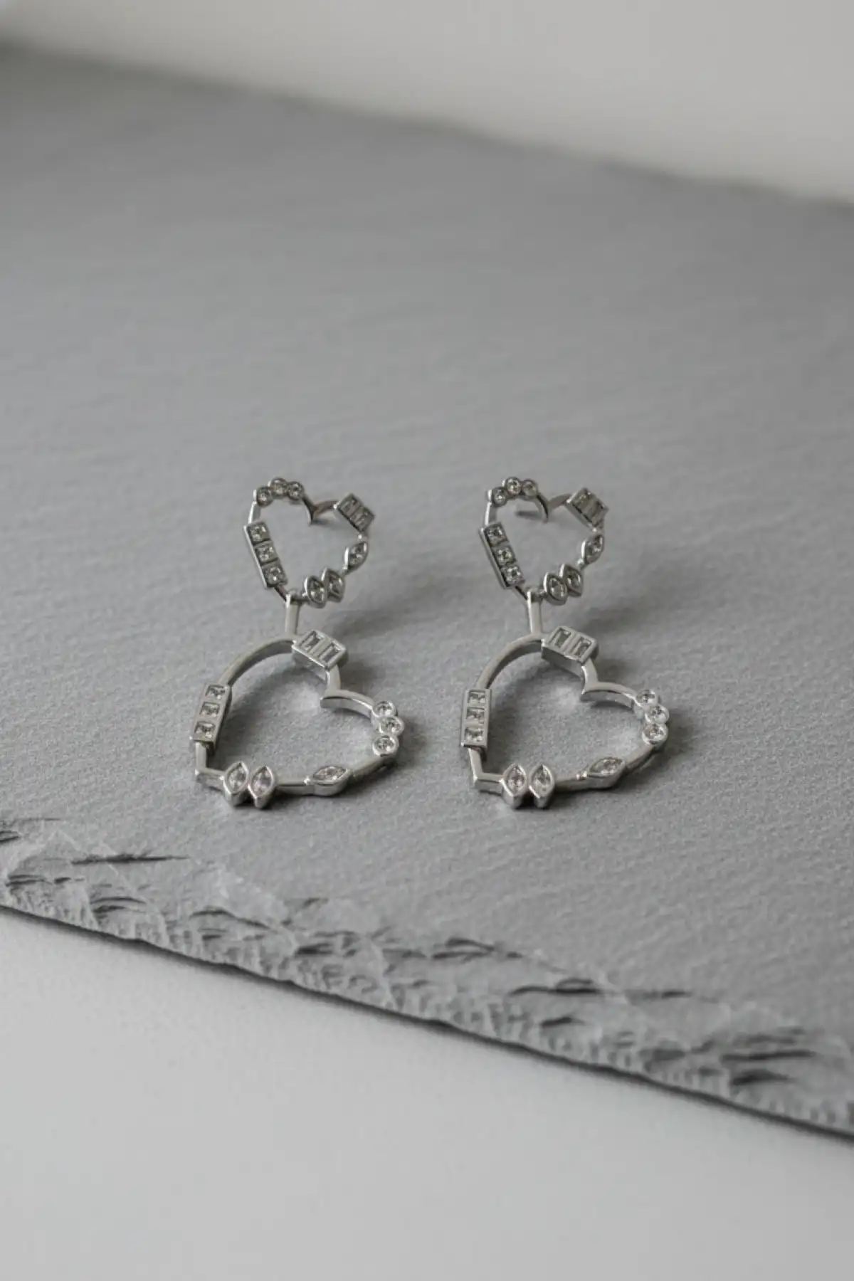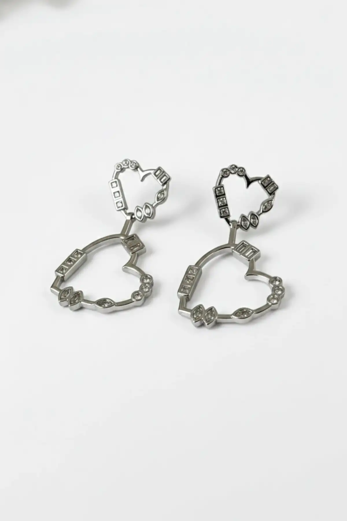 Kalp Figürlü Taşlı Gümüş Renk Paslanmaz Çelik Küpe