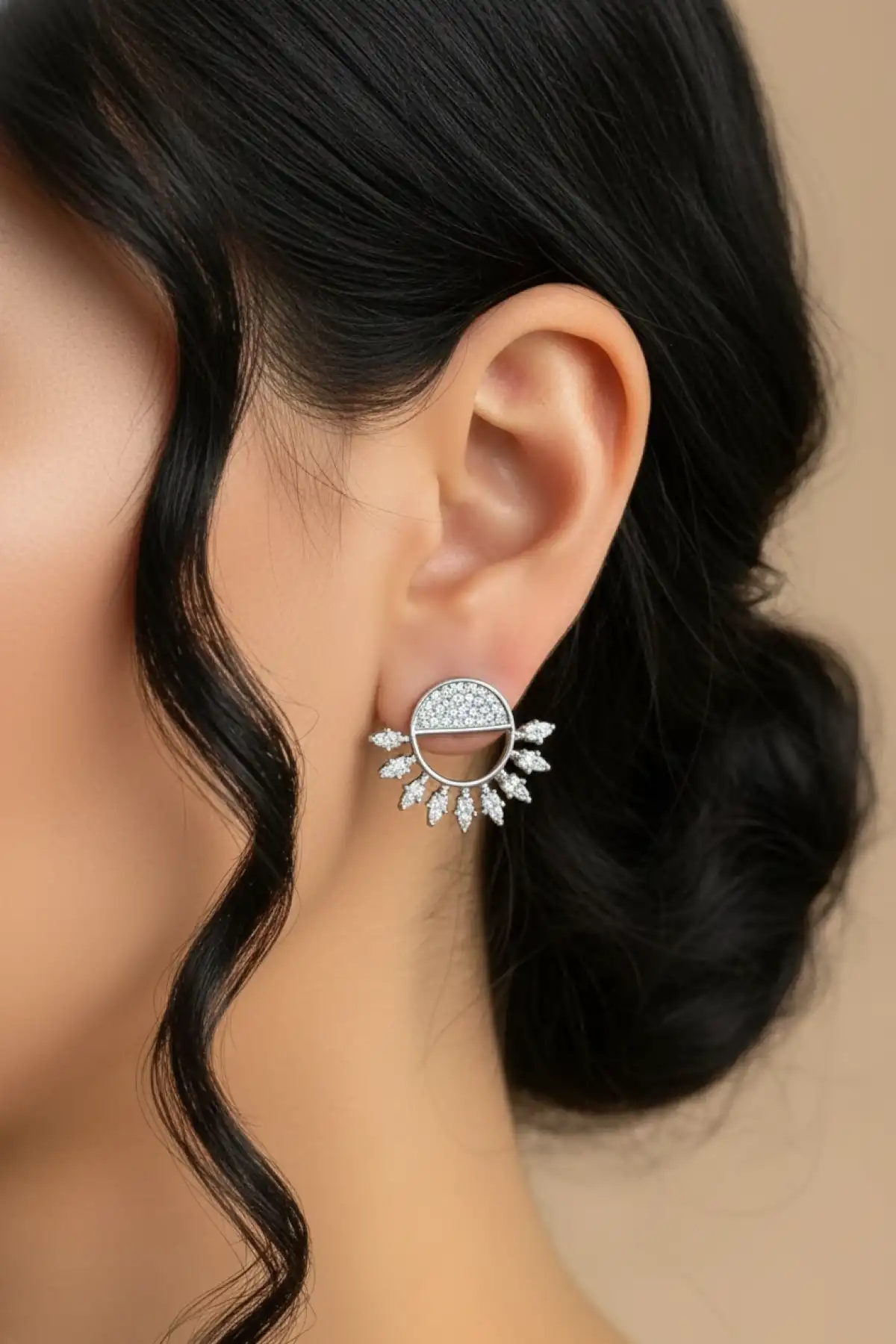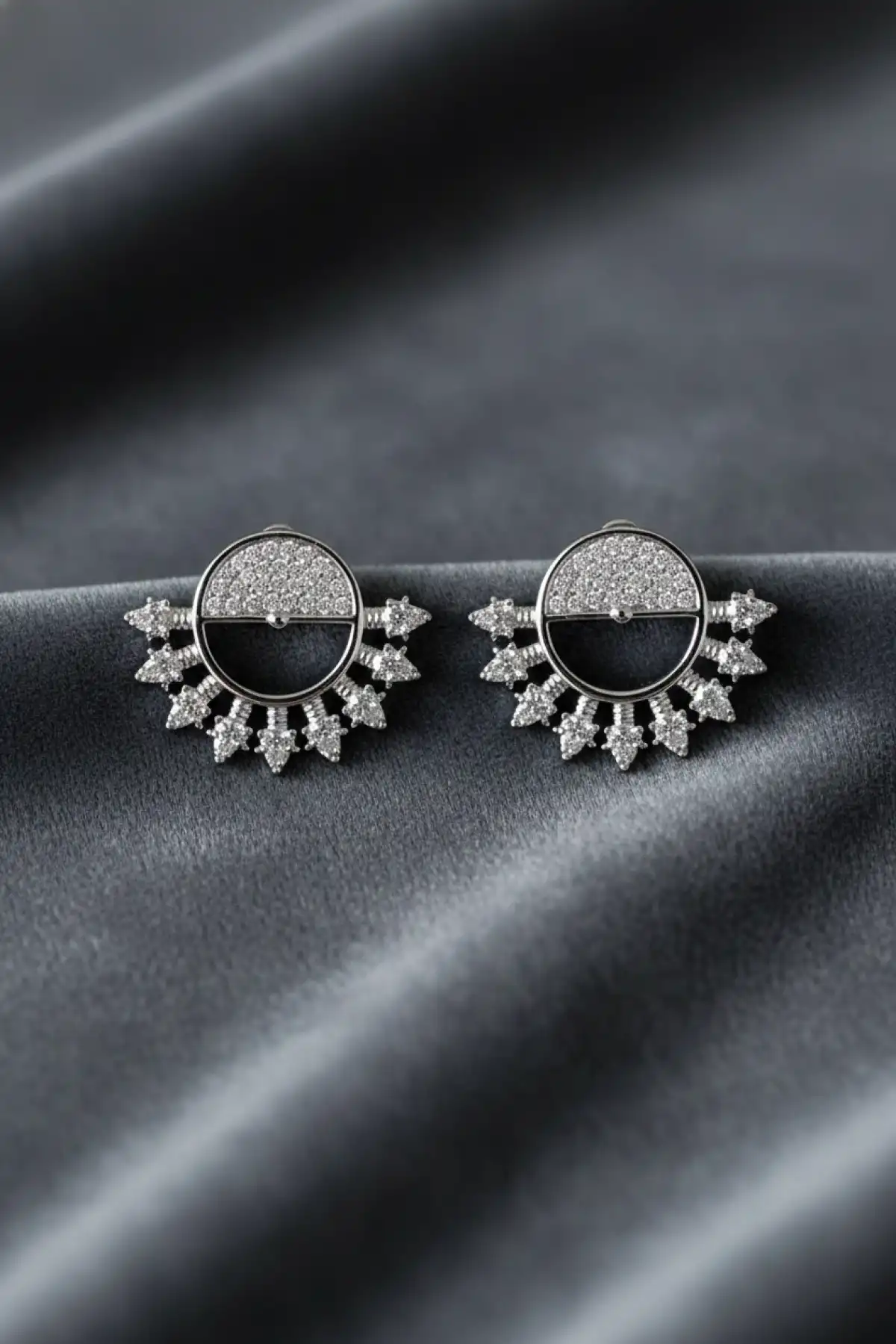 Sunburst Tasarımlı Taşlı Paslanmaz Çelik Küpe