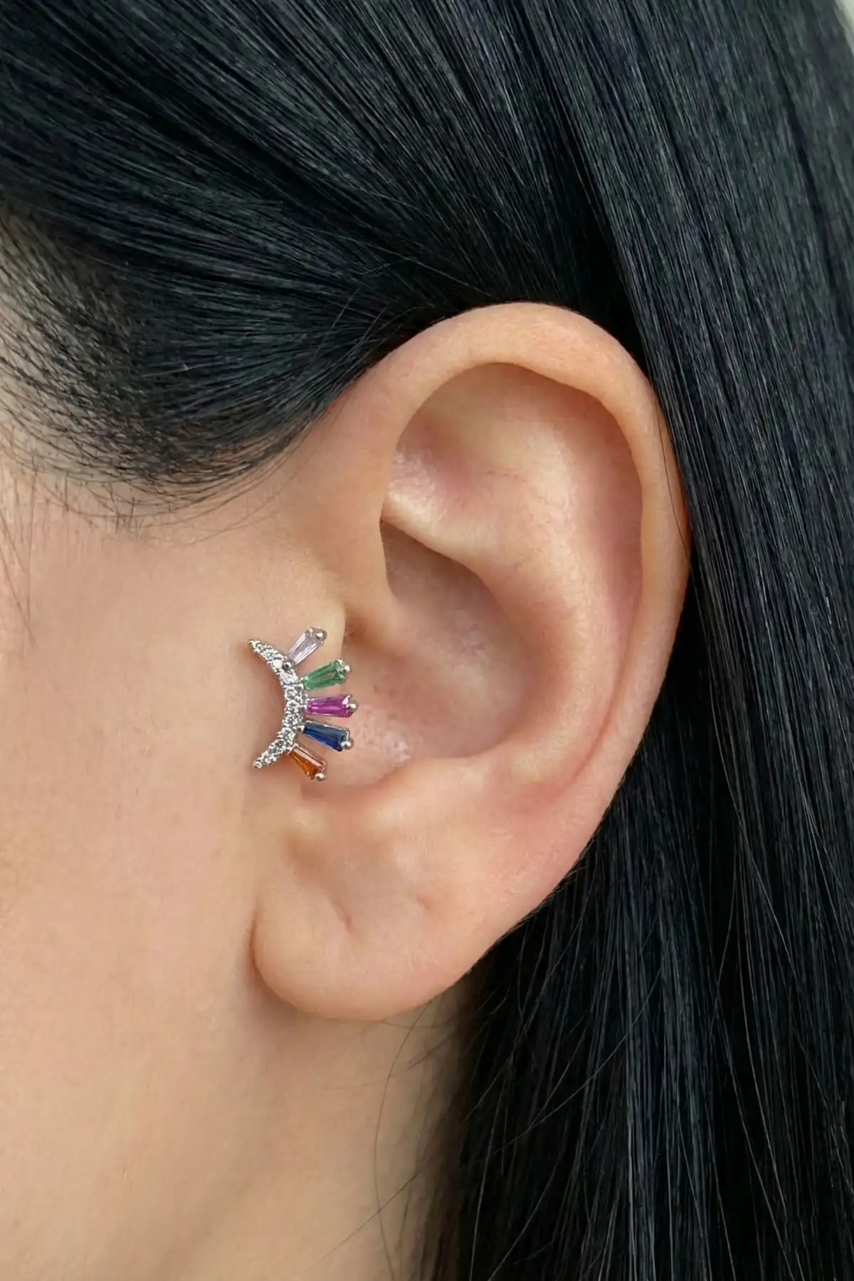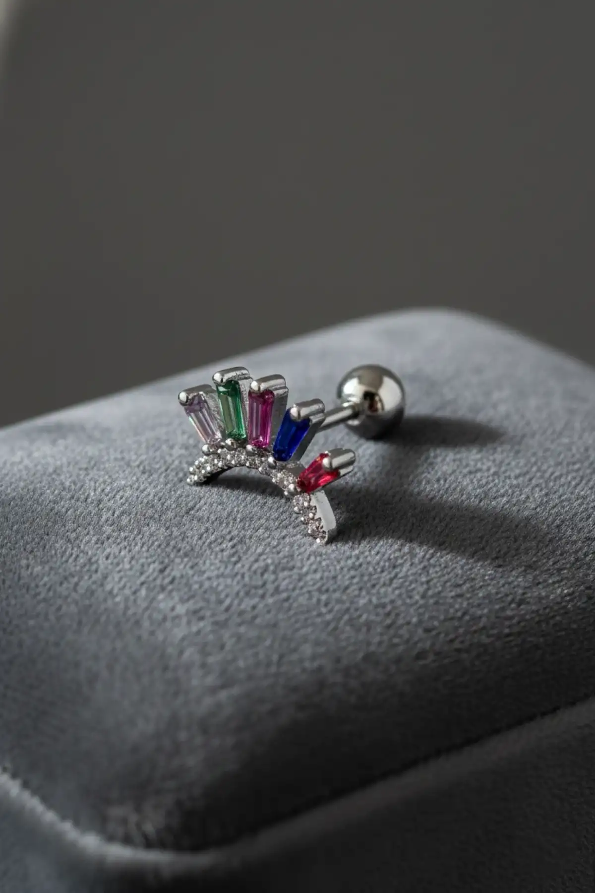 Renkli Taşlı Tragus Piercing Küpe / Kıkırdak Küpe – Kararmaz Çelik, Küçük Boy Kadın Piercing