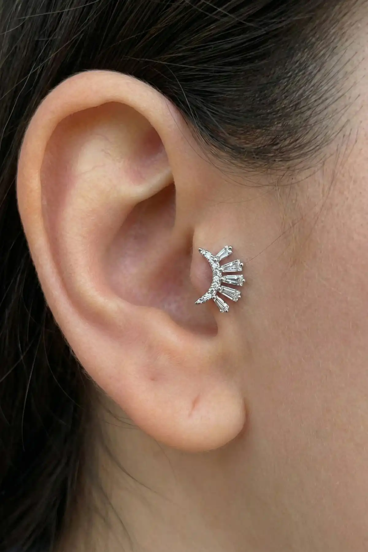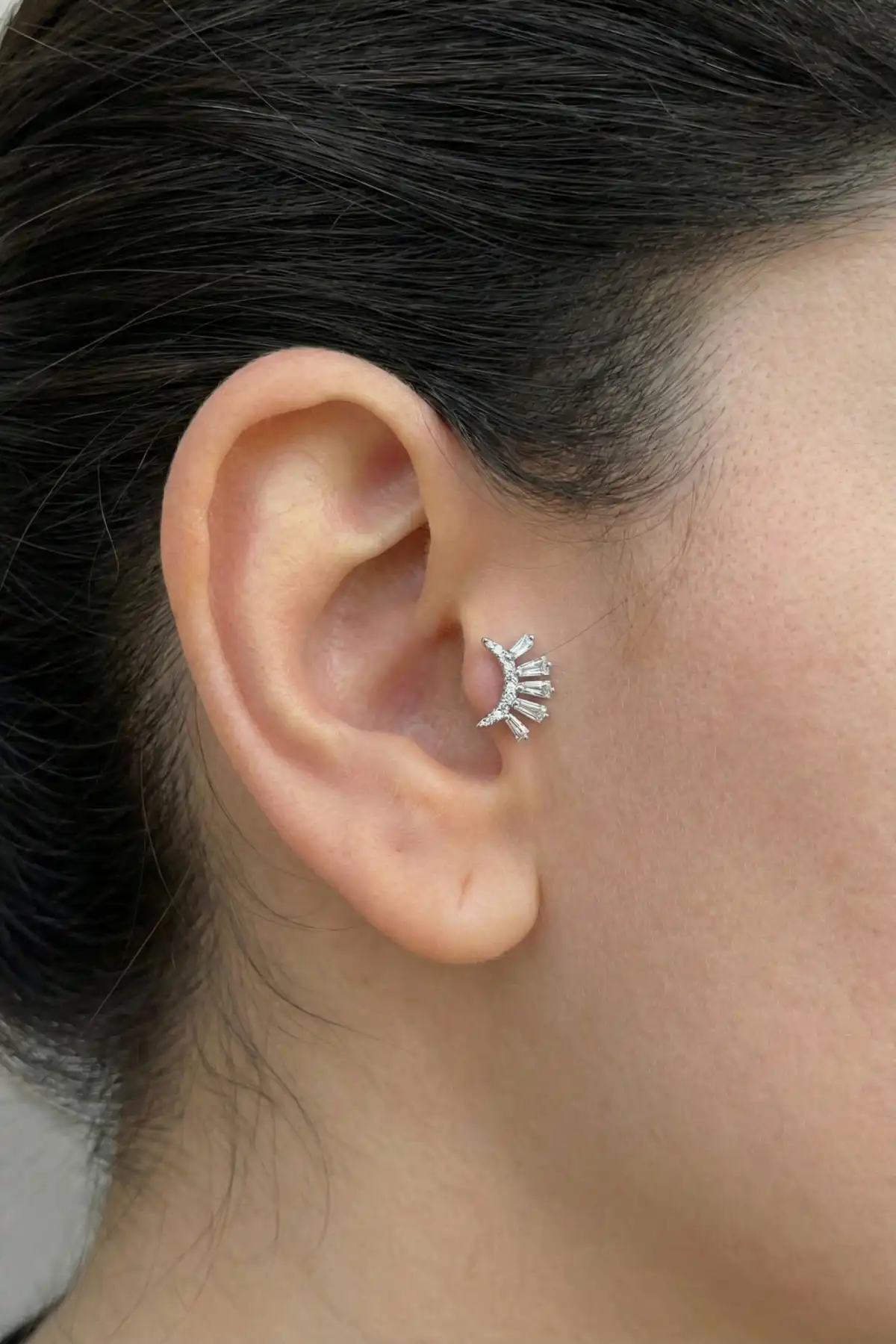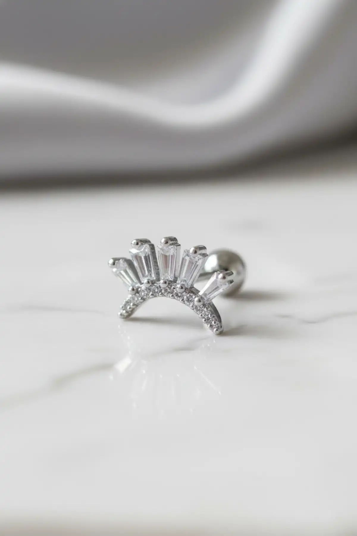 Fiyonk Taşlı Tragus Piercing Küpe – Kararmaz Çelik, Küçük Boy Kadın Piercing