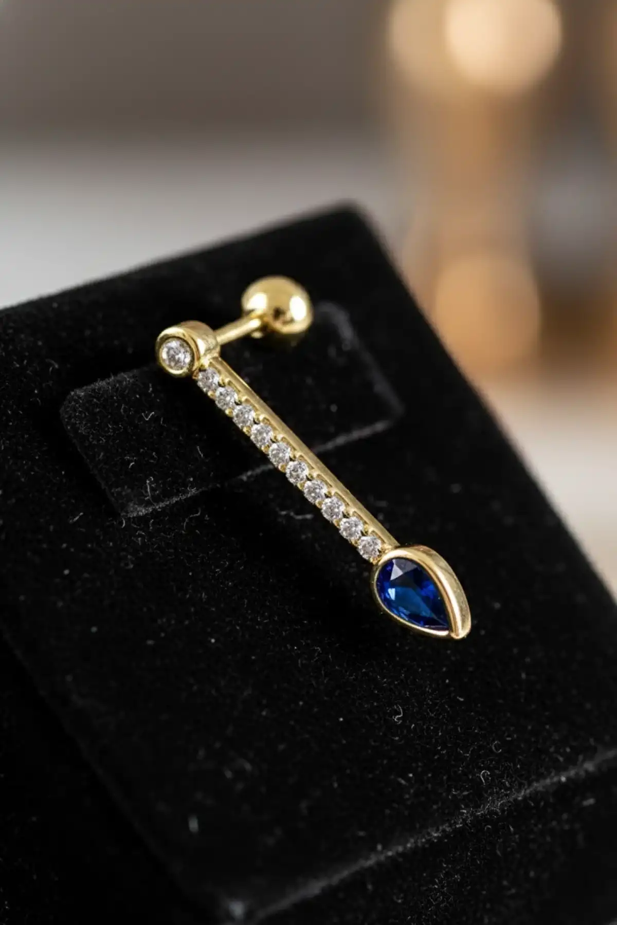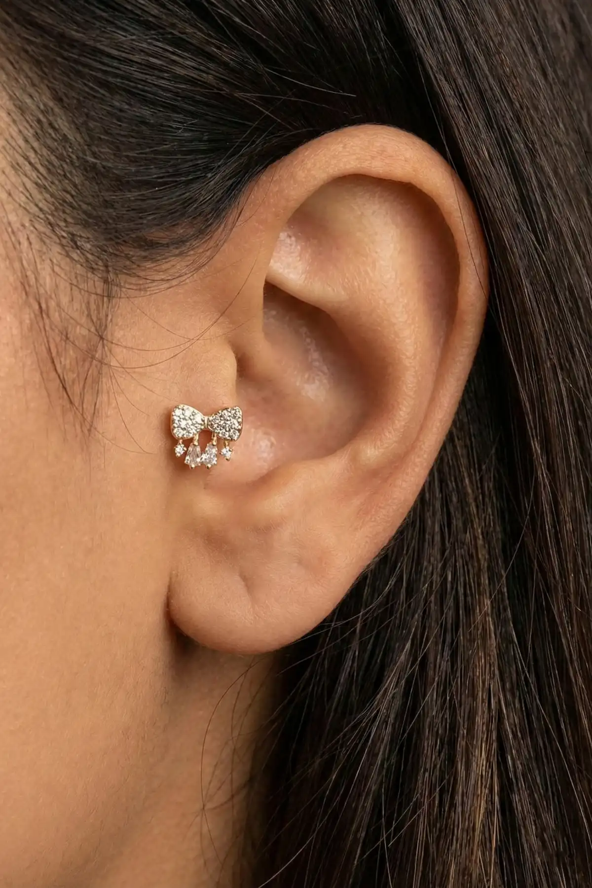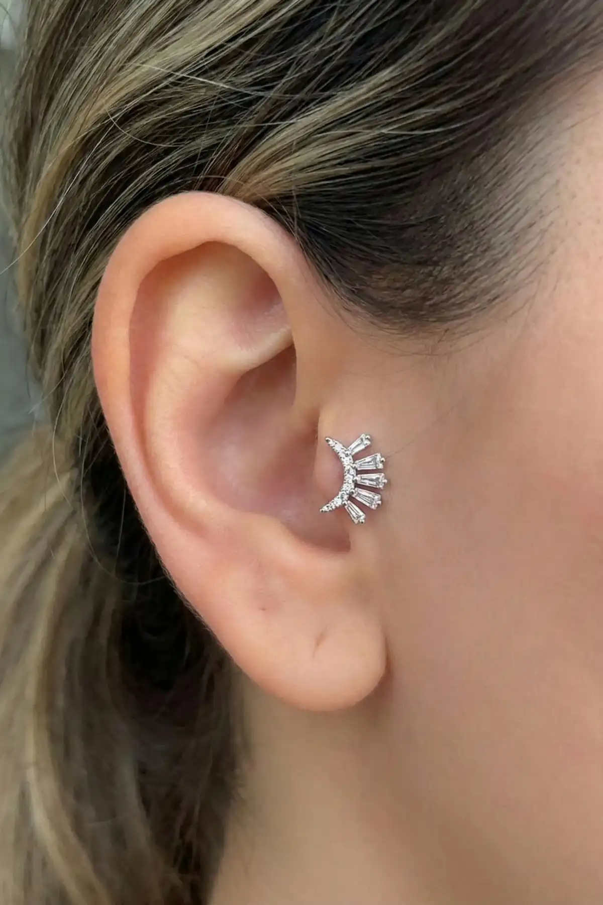 Fiyonk Taşlı Tragus Piercing Küpe – Kararmaz Çelik, Küçük Boy Kadın Piercing