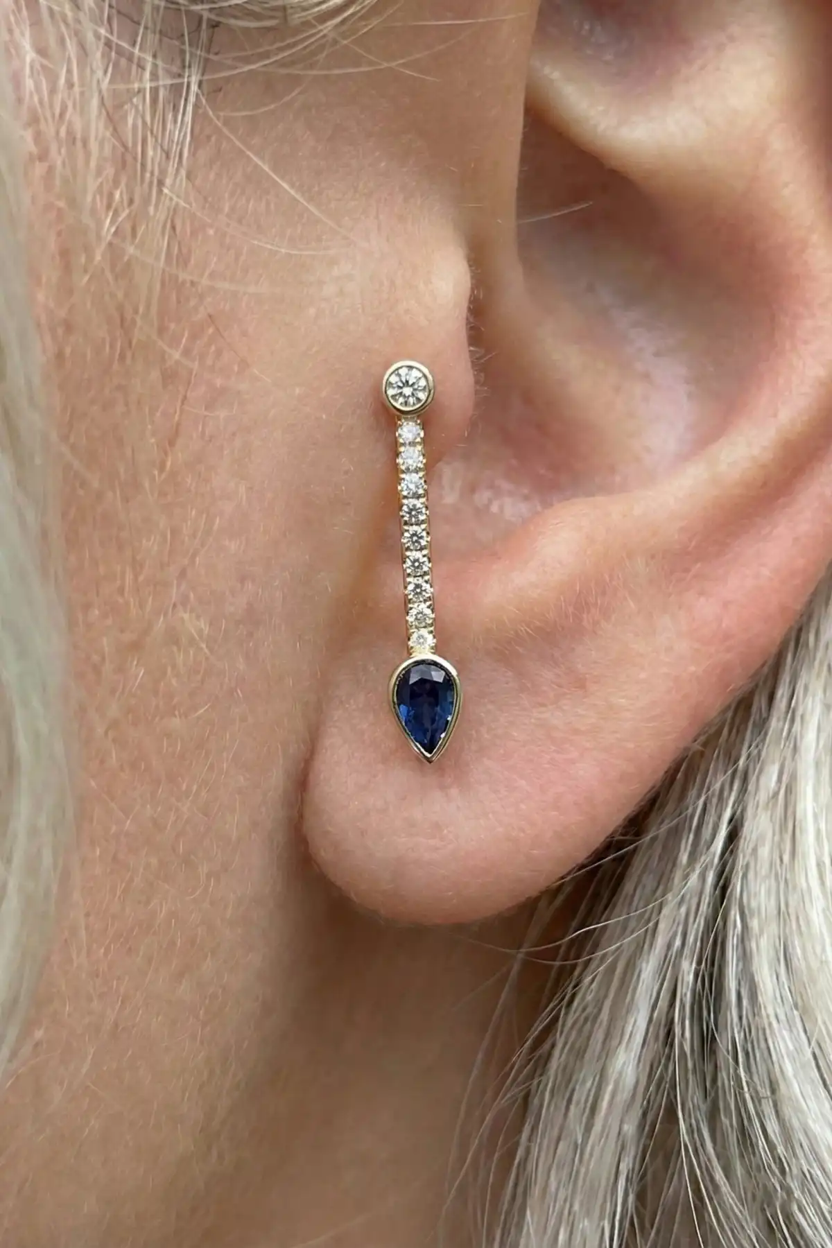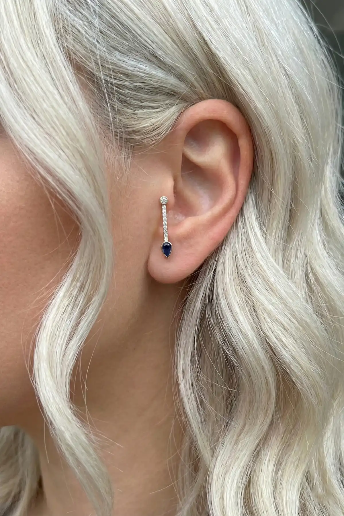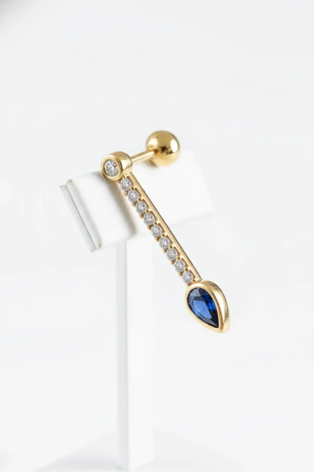 Lacivert Damla Taşlı Sallantılı Küpe / Kıkırdak Küpe – Kararmaz Çelik, Şık Kadın Küpe