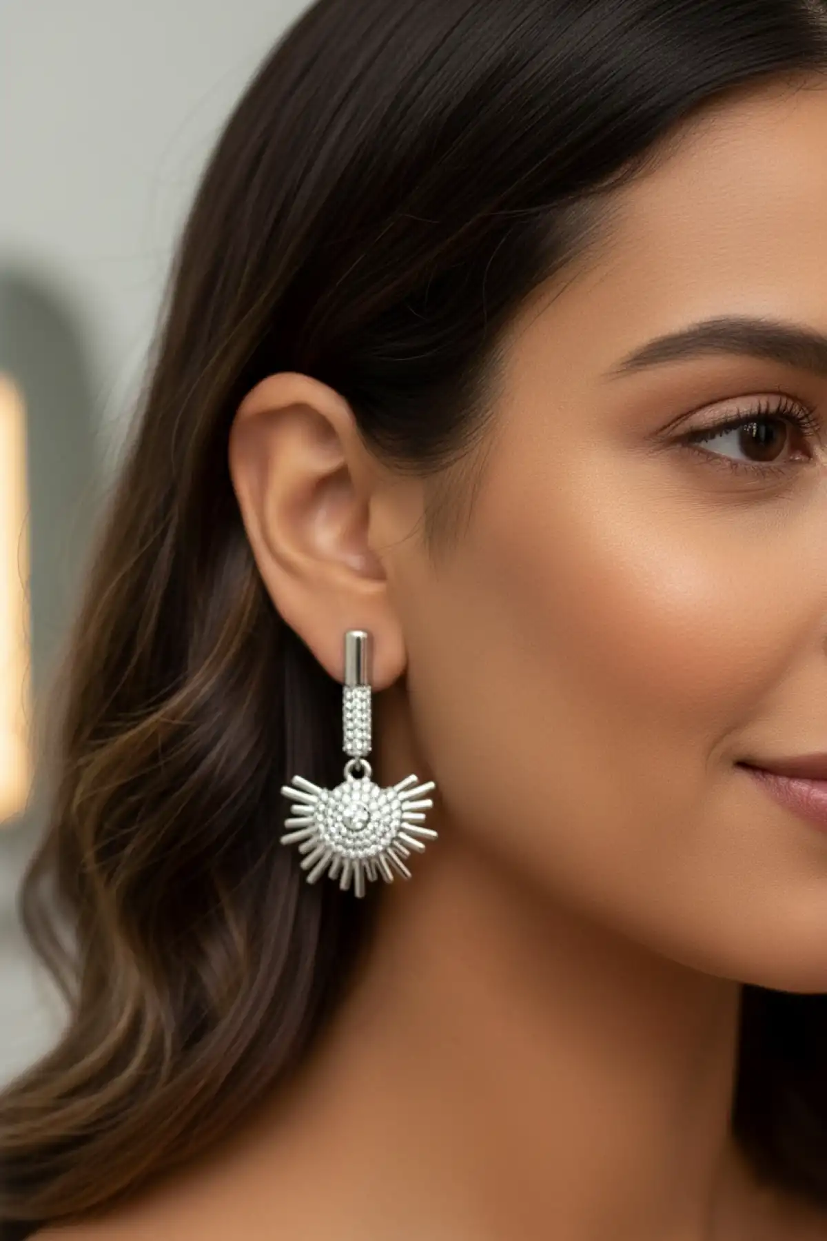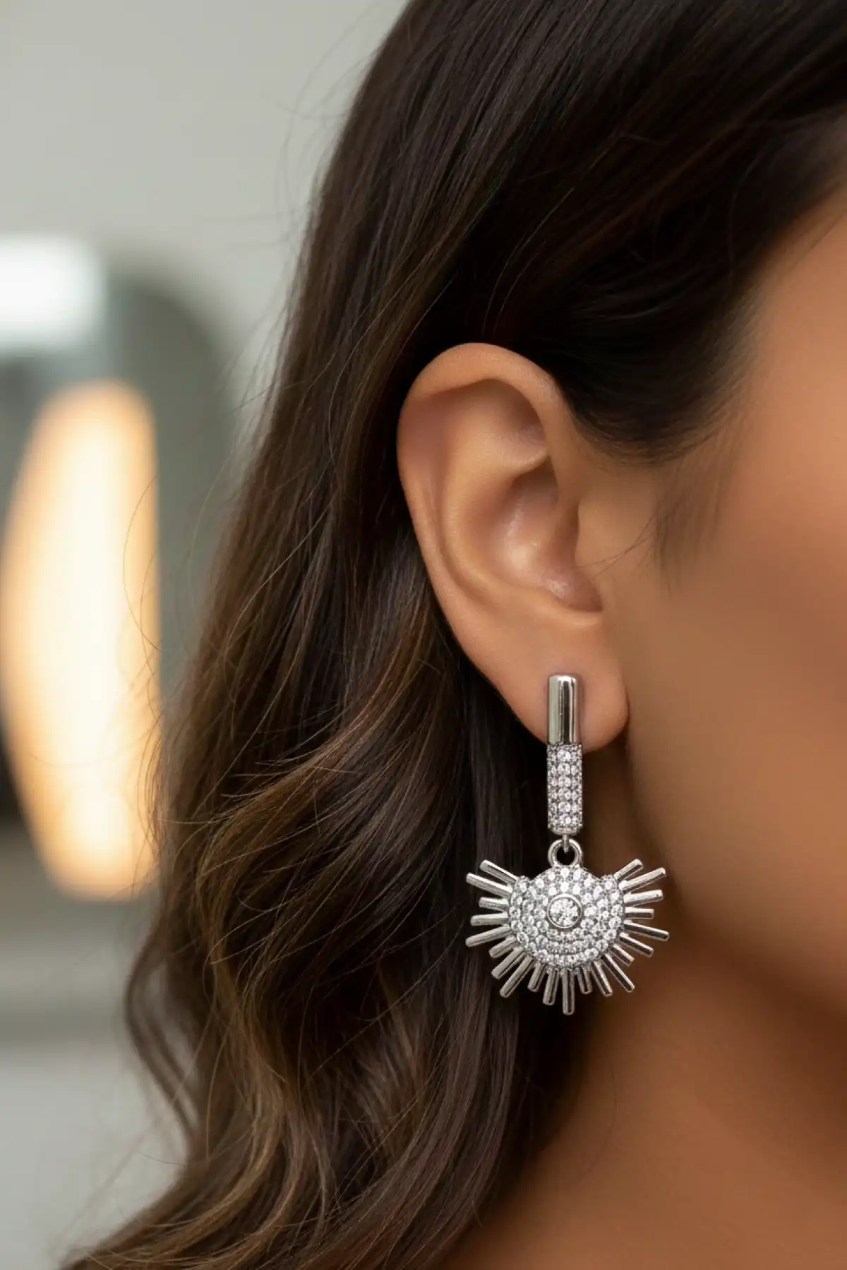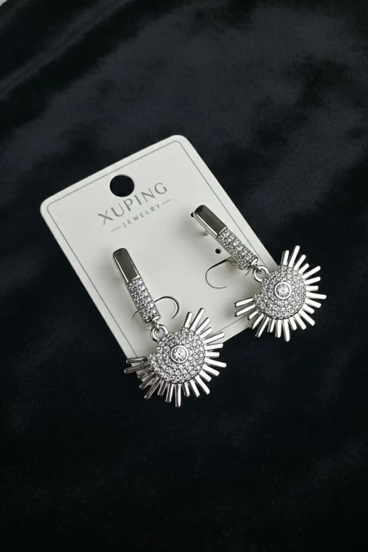 Xuping Güneş Motifli Taşlı Gümüş Renk Küpe – Işıltılı, Şık, Zarif Tasarım