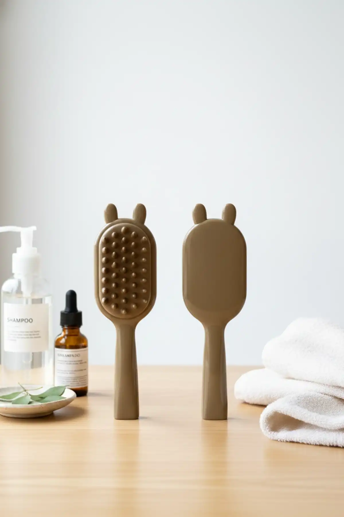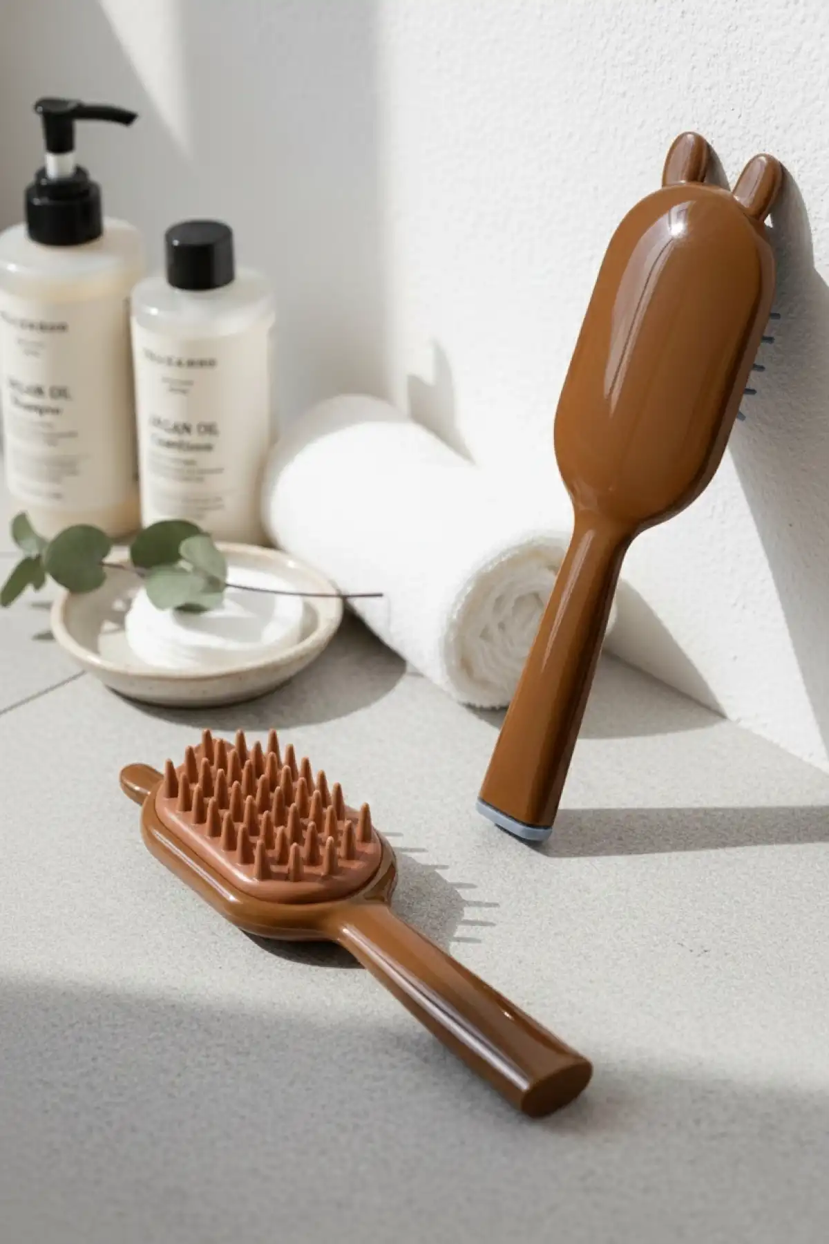 Acı Kahve Kulak Detaylı Saç Fırçası – Masaj Etkili Anti-Kırılma