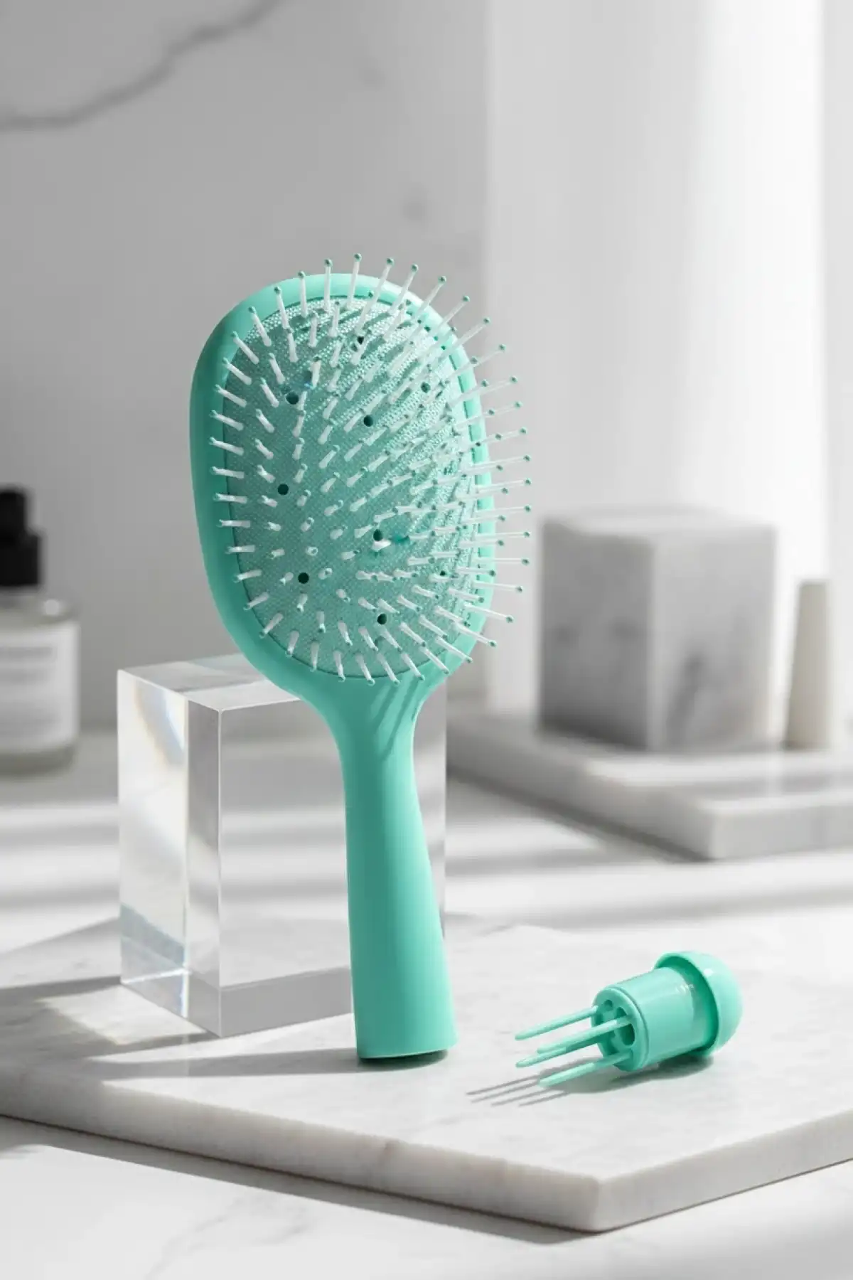 Saç Fırçası Temizleme Aparatlı – Saç Dökülme Önleyici Rahatlatıcı Oval Tarak – Mint Yeşili