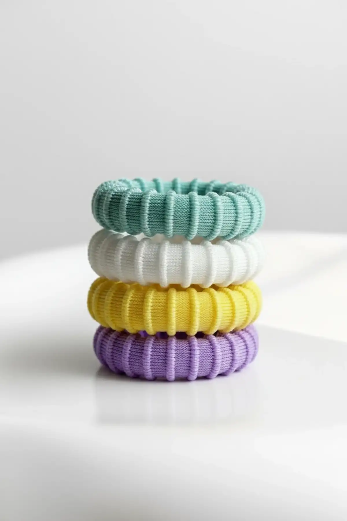 4’lü Renkli Kumaş Kaplamalı Kalın Lastik Toka Seti – Saç Tokası, Scrunchie Model