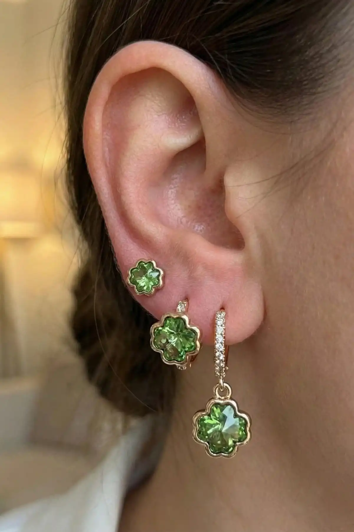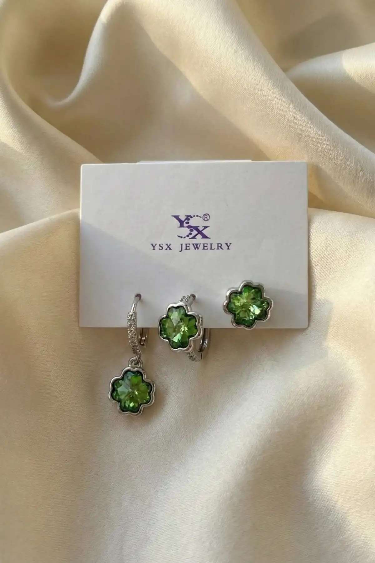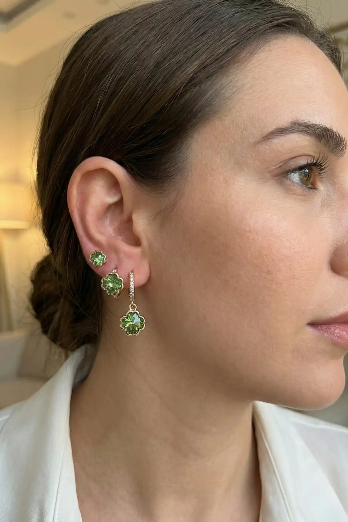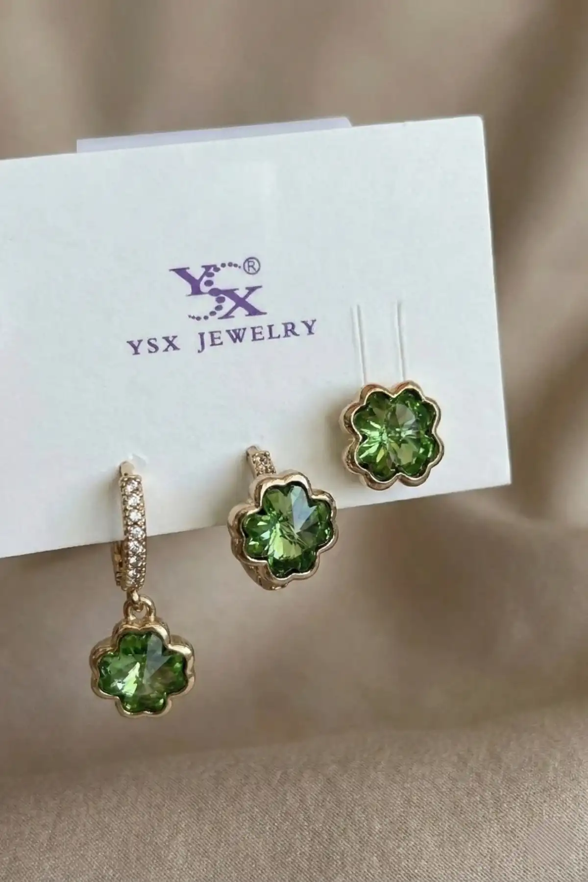 YSX 14K Altın Kaplama Zümrüt Renk Zirkon Taşlı Çiçek Form Sallantılı Küpe