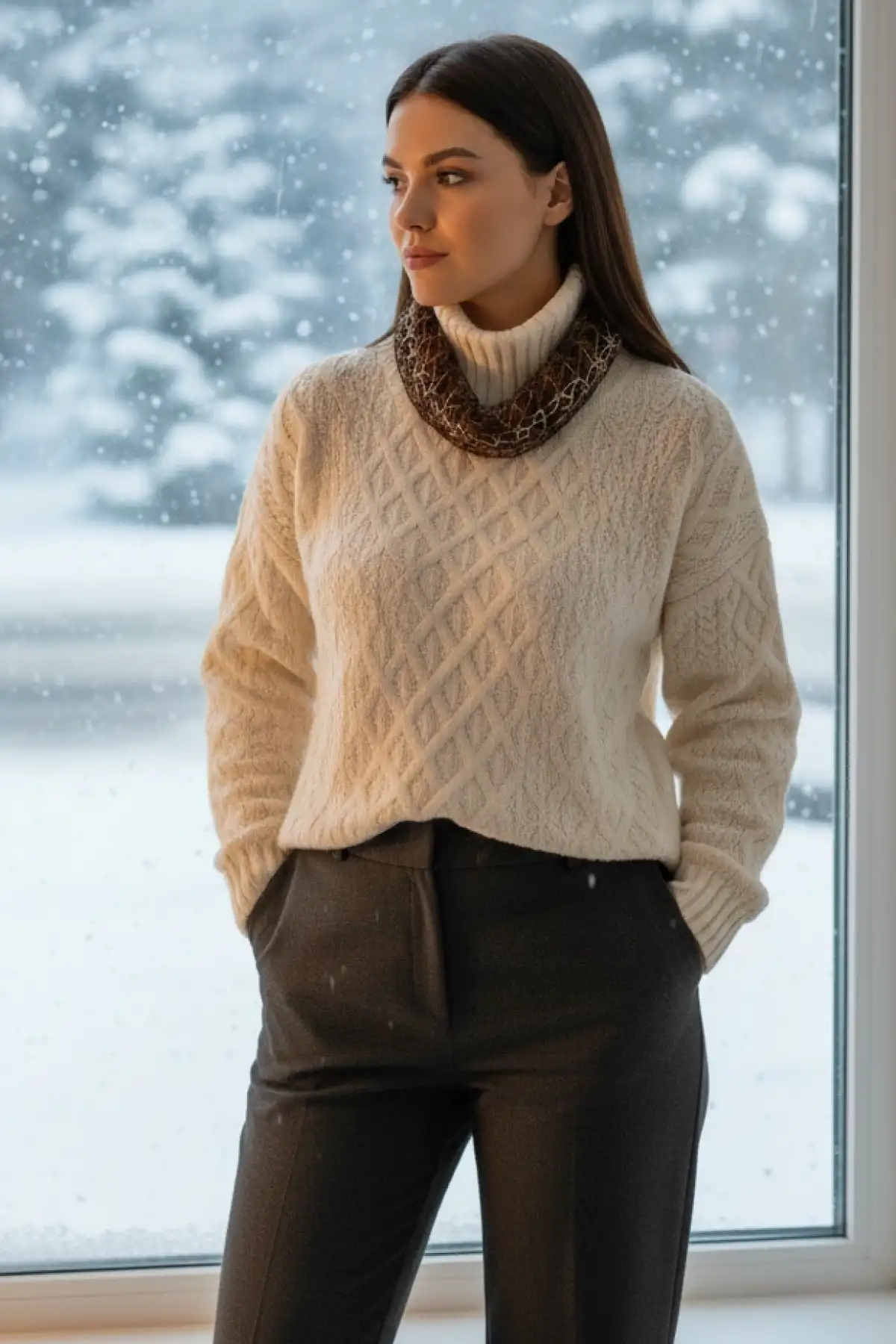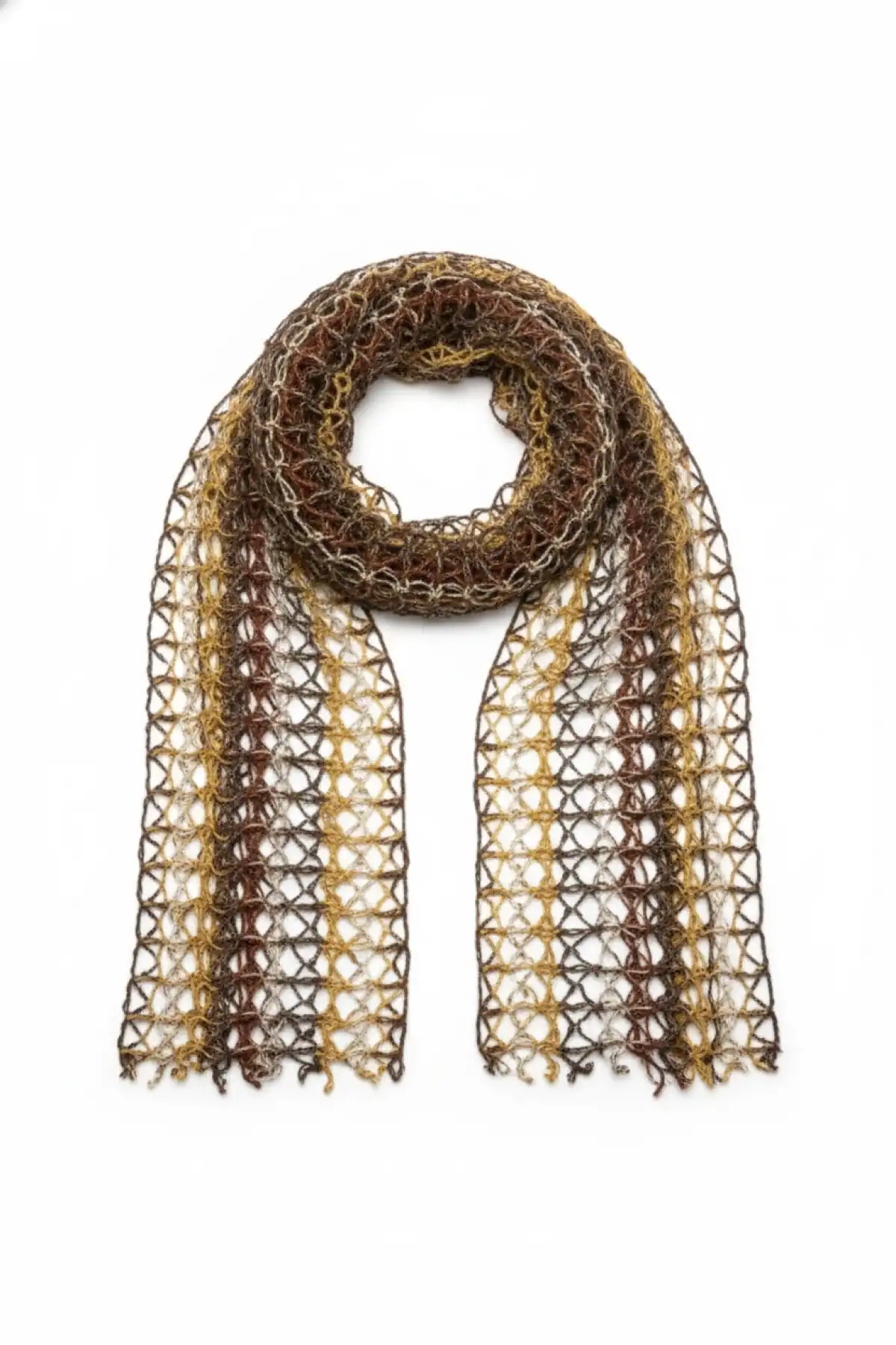 El Örgüsü Açık Desenli Kahverengi Hardal Sarısı Şal