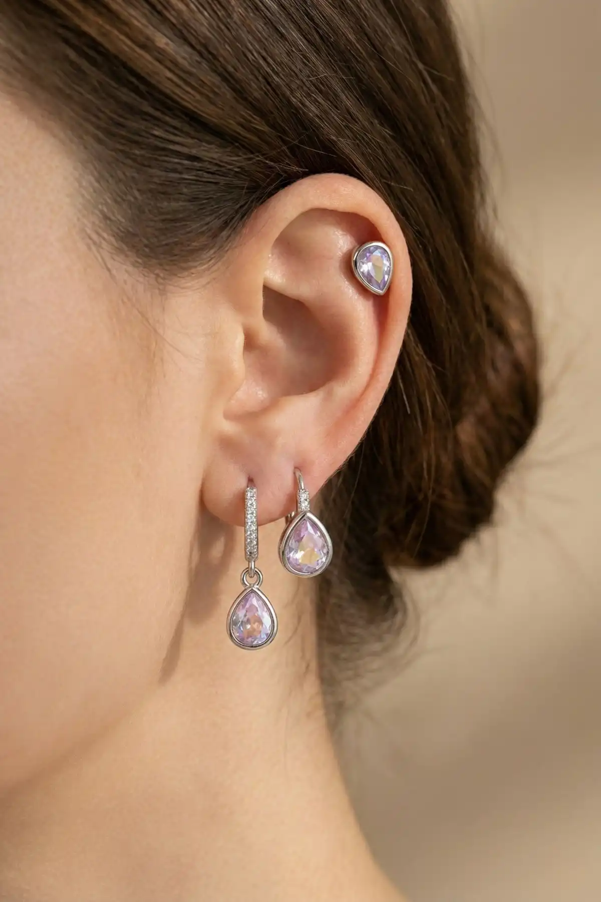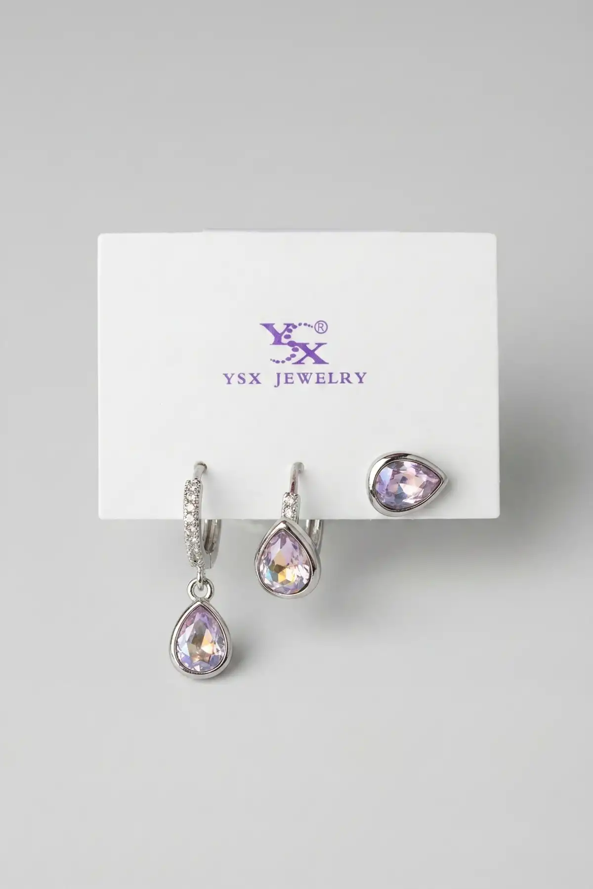 YSX 14K Altın Kaplama Ametist Renk Zirkon Taşlı Damla Form Sallantılı Küpe
