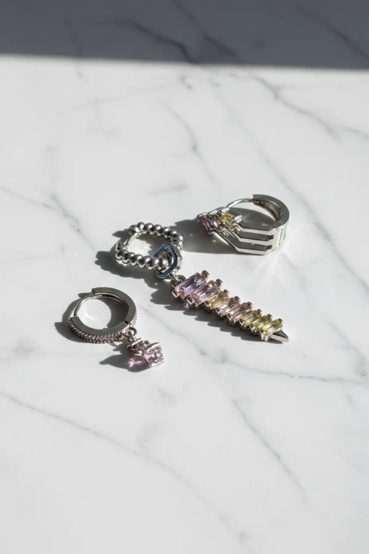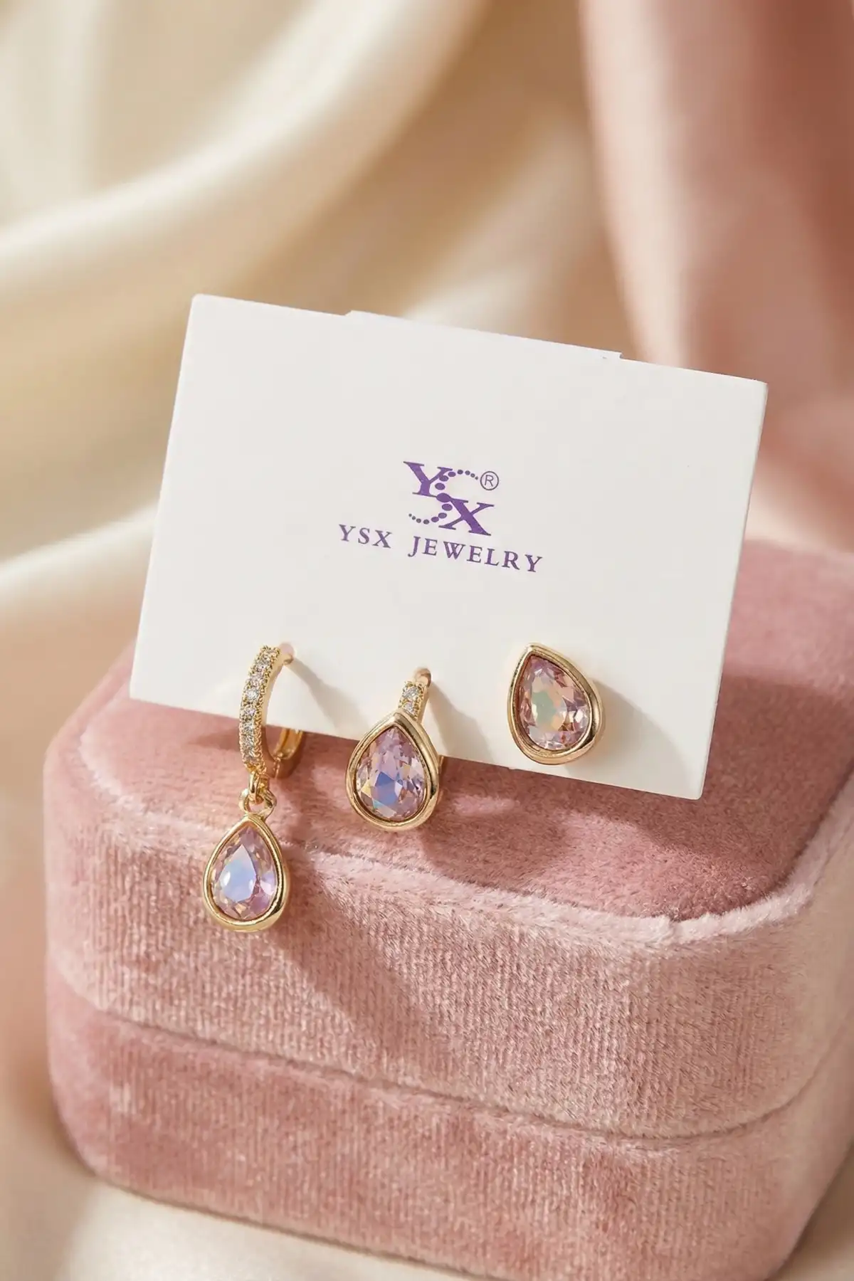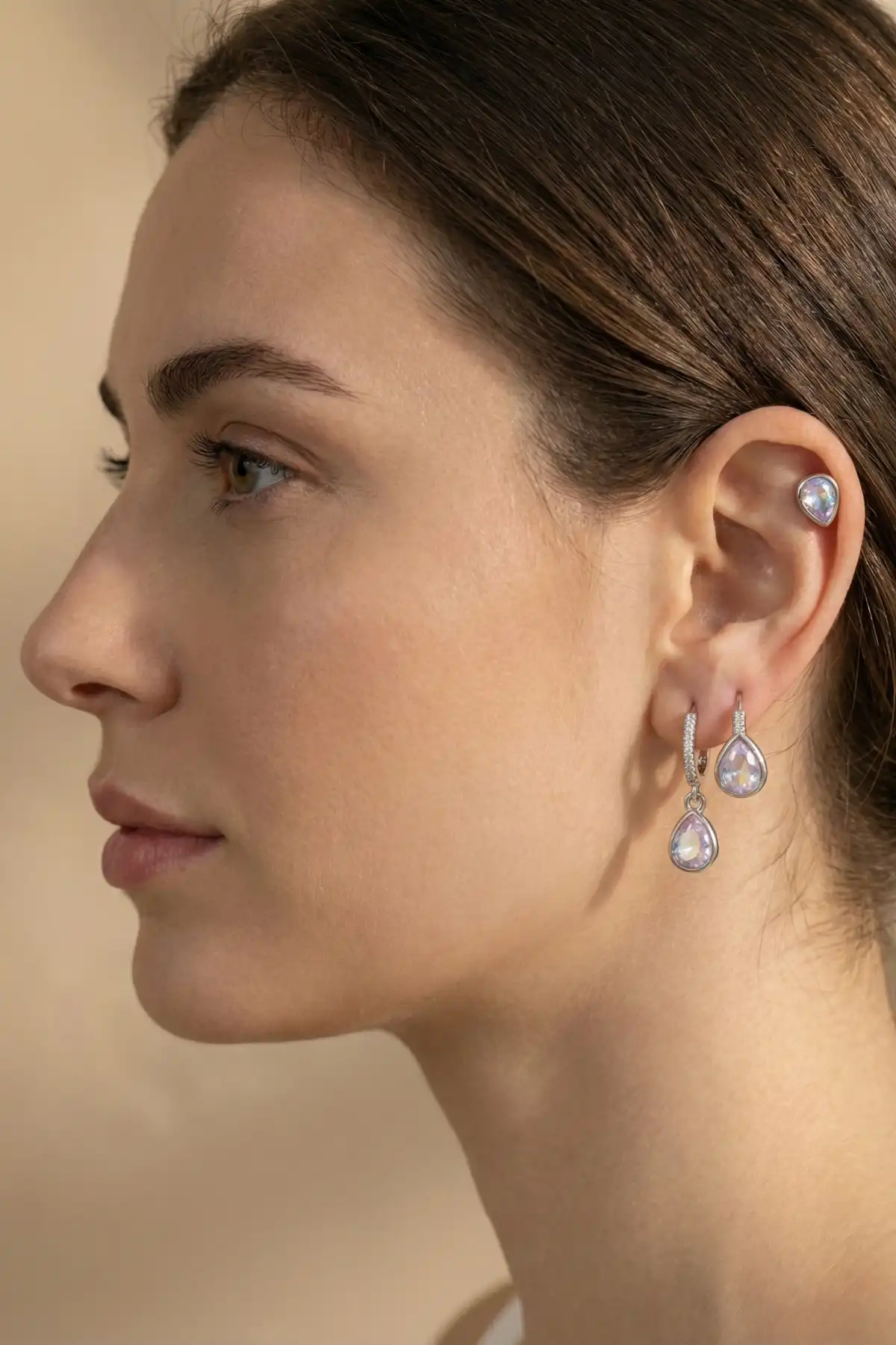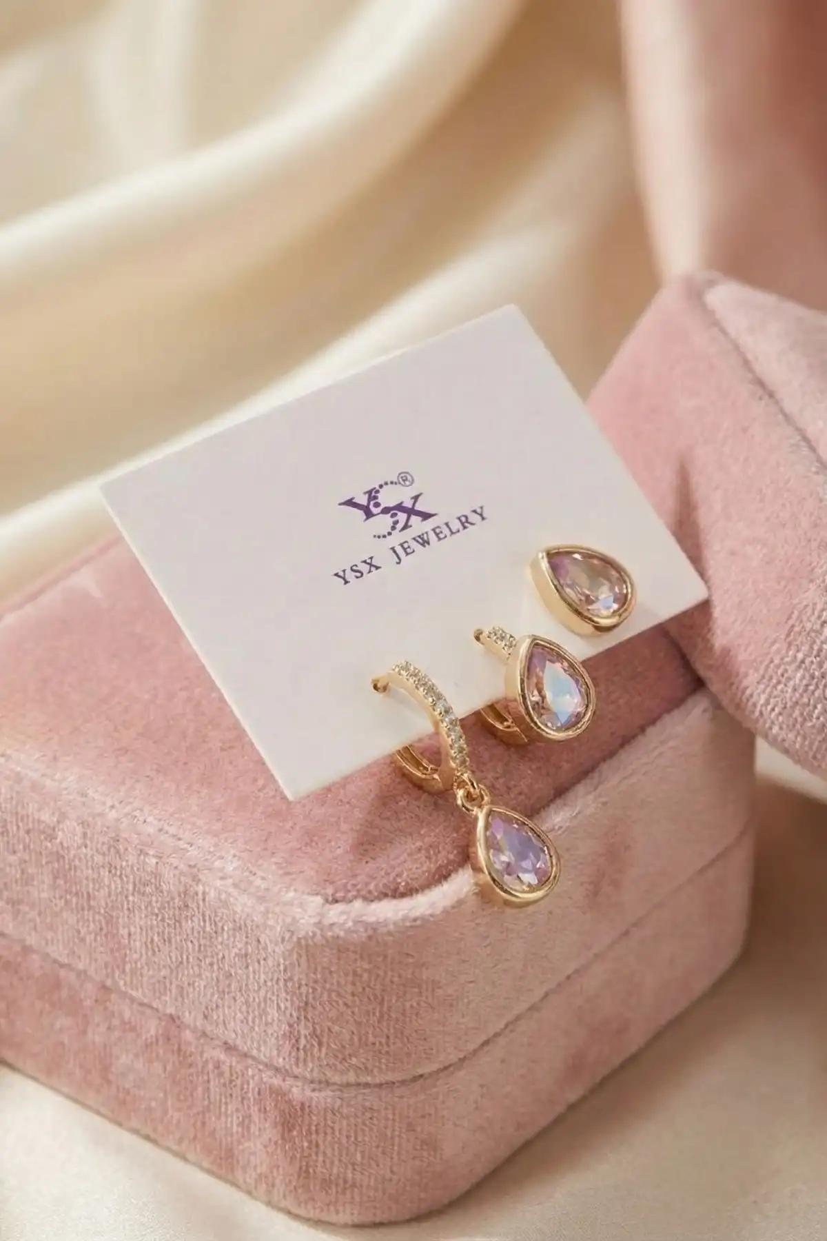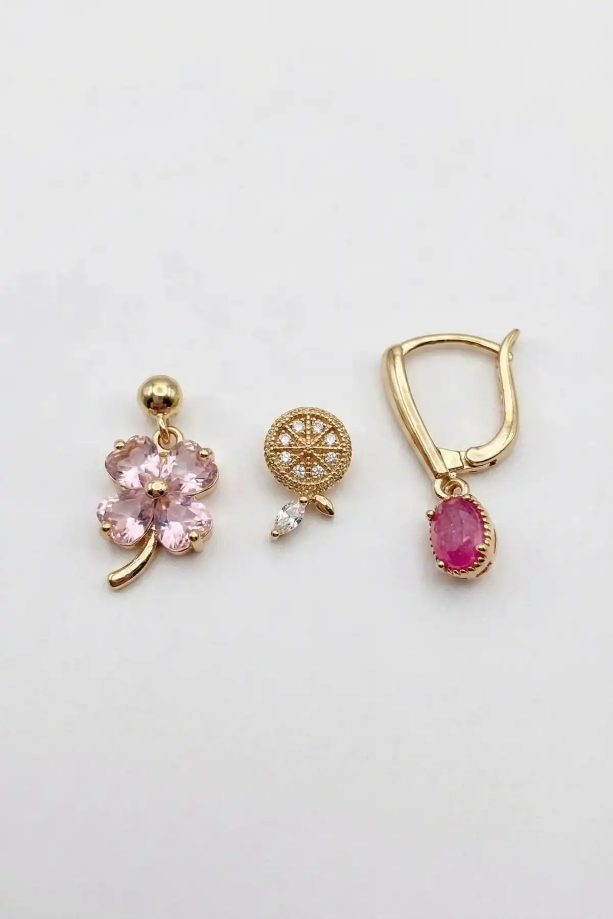 YSX 14K Altın Kaplama Beyaz Zirkon Taşlı Çok Figürlü Sallantılı Küpe