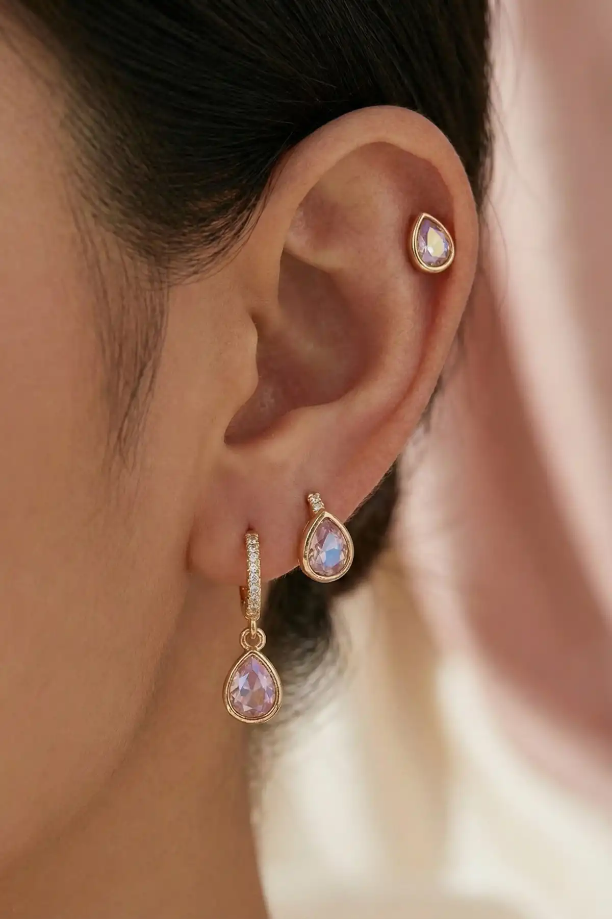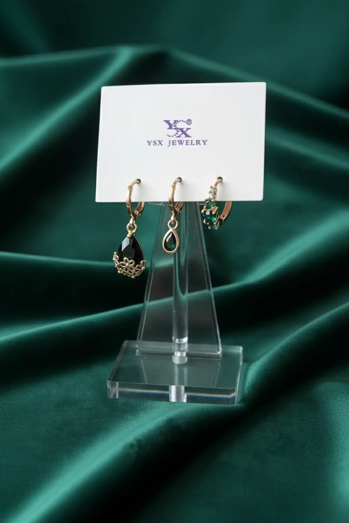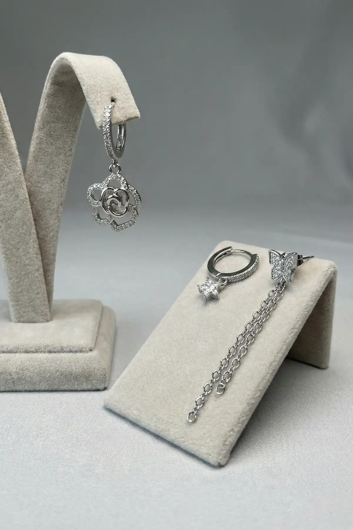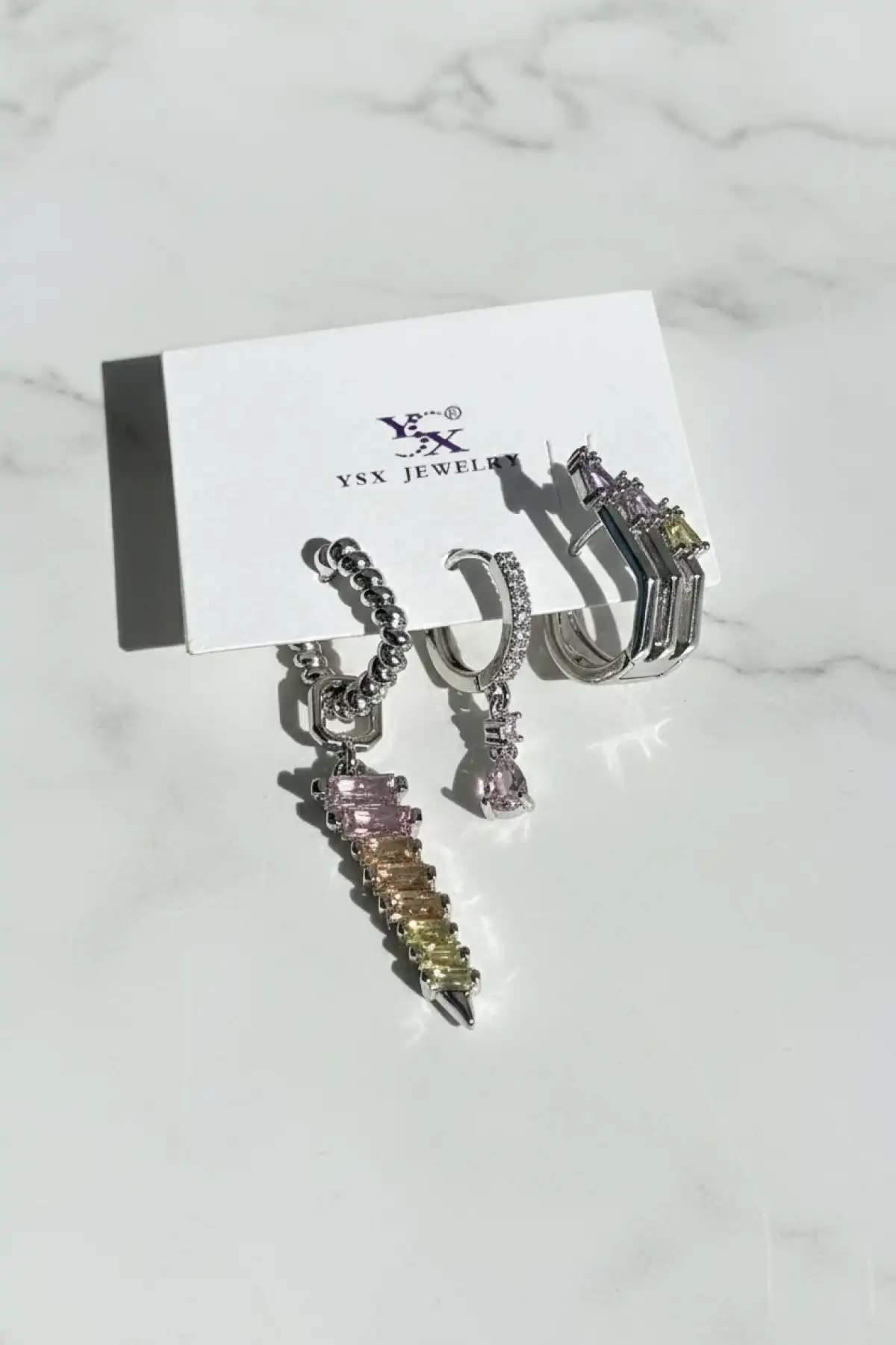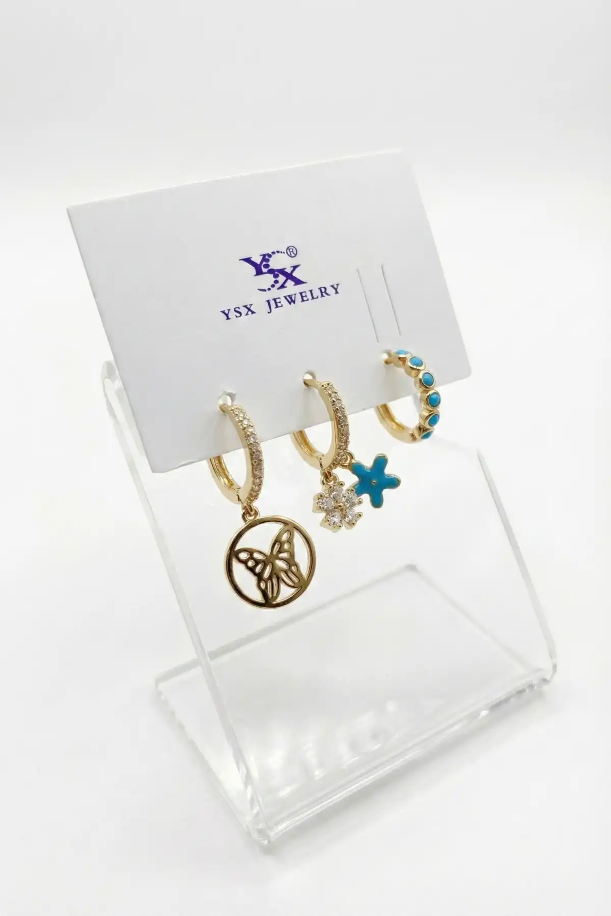 YSX 14K Altın Kaplama Zirkon Taşlı Yıldız Figürlü Çoklu Küpe Seti