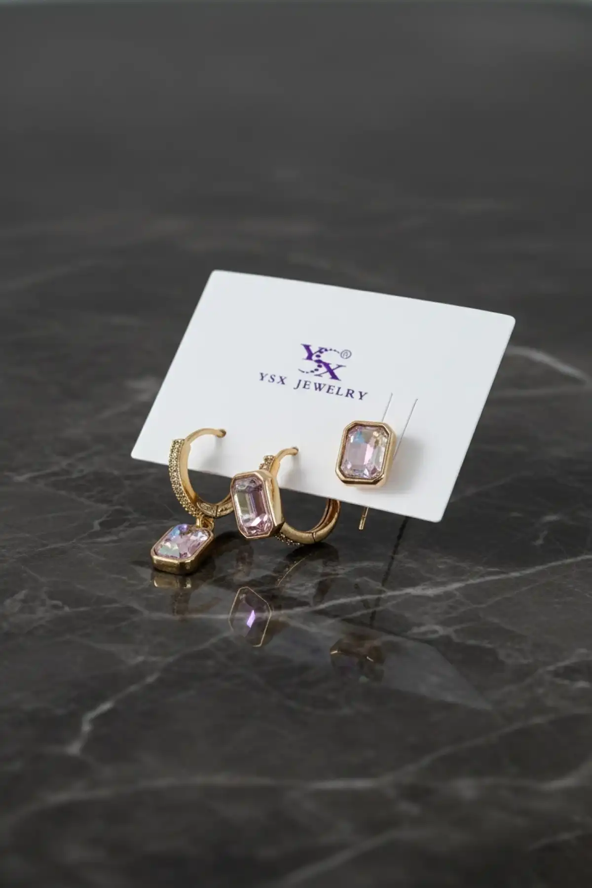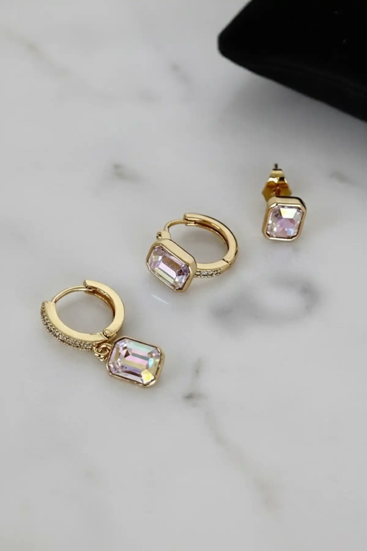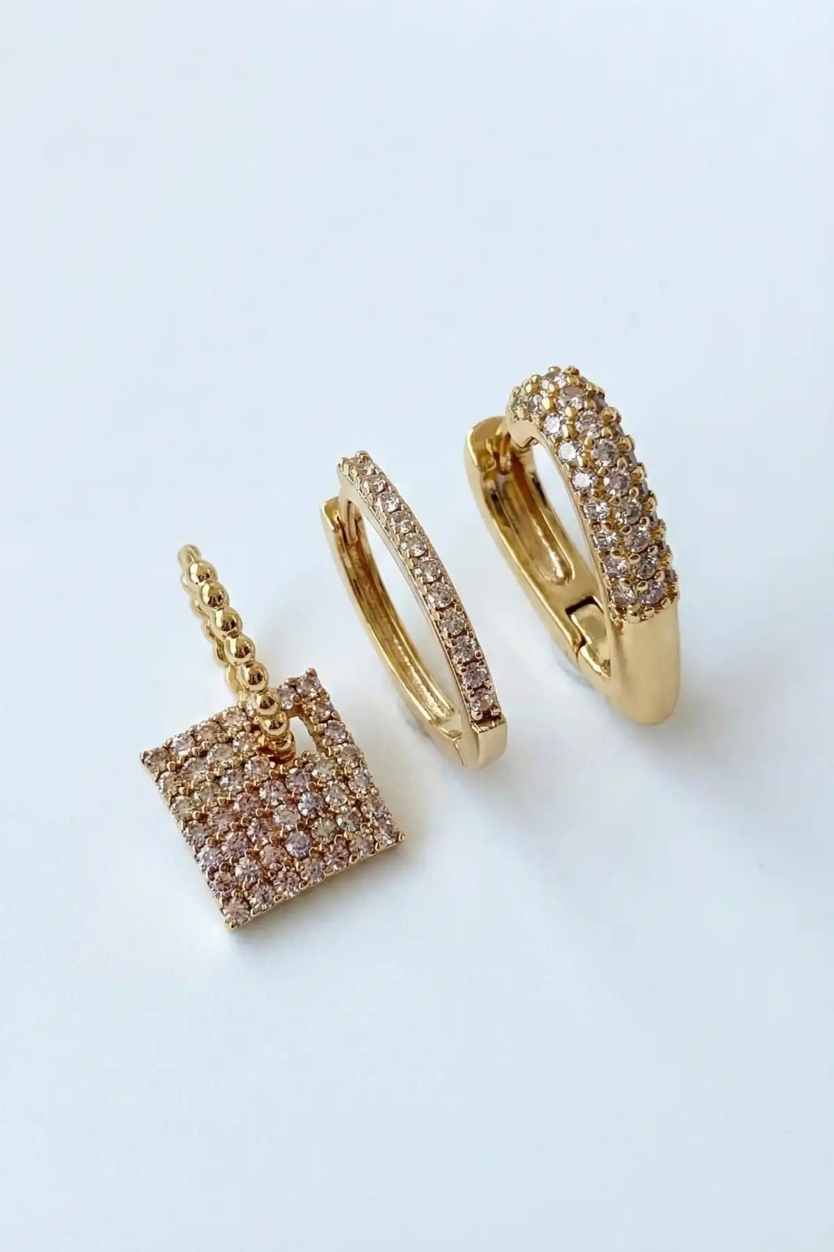 YSX 14K Altın Kaplama Kare Taş Detaylı Sallantılı Küpe