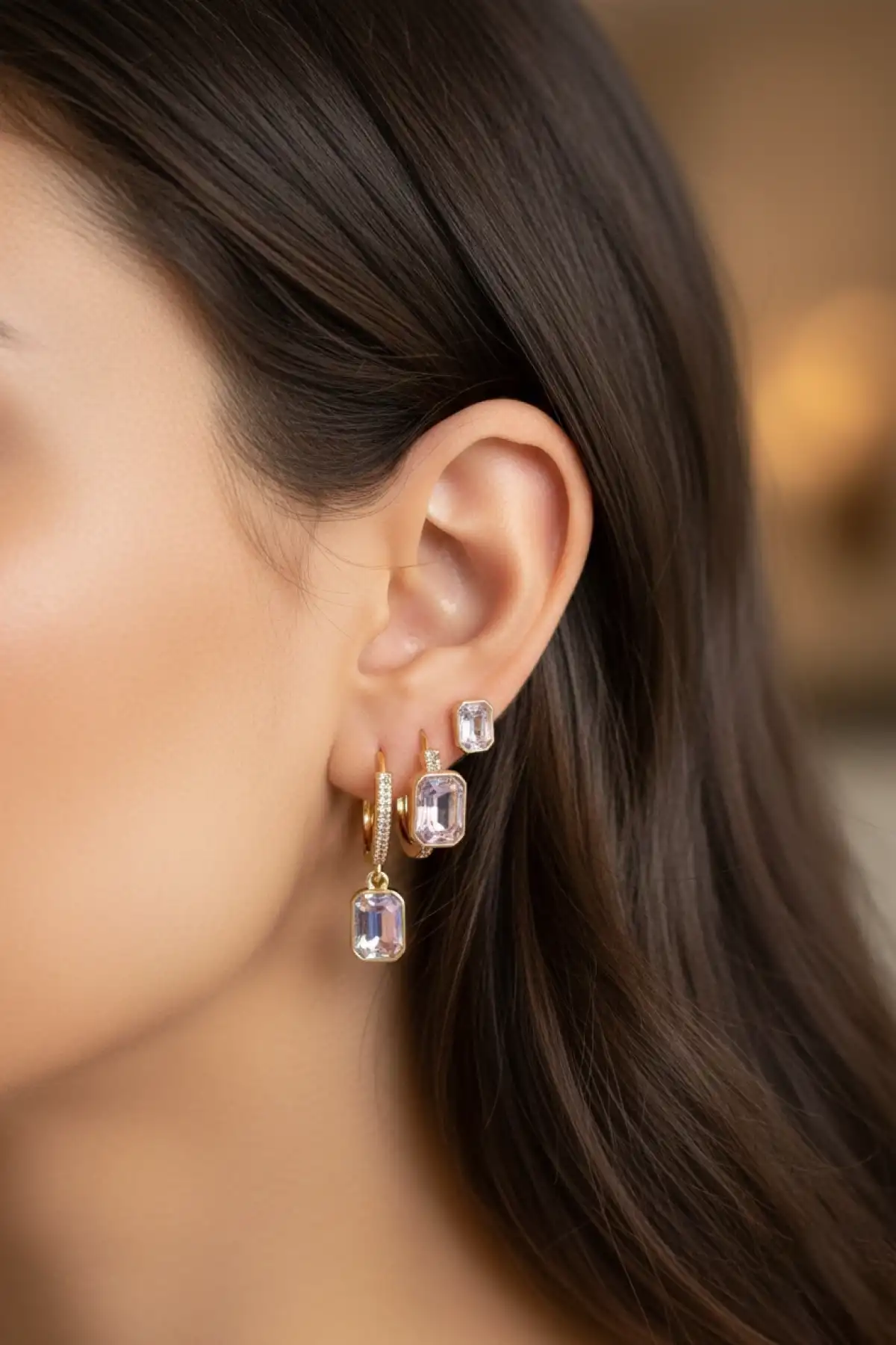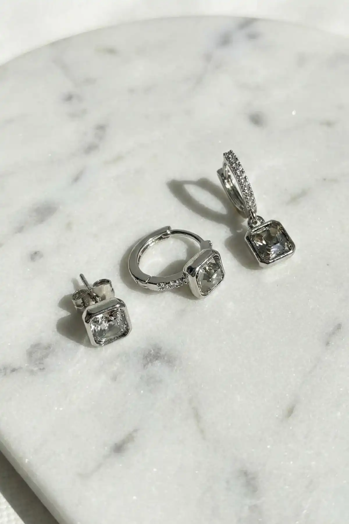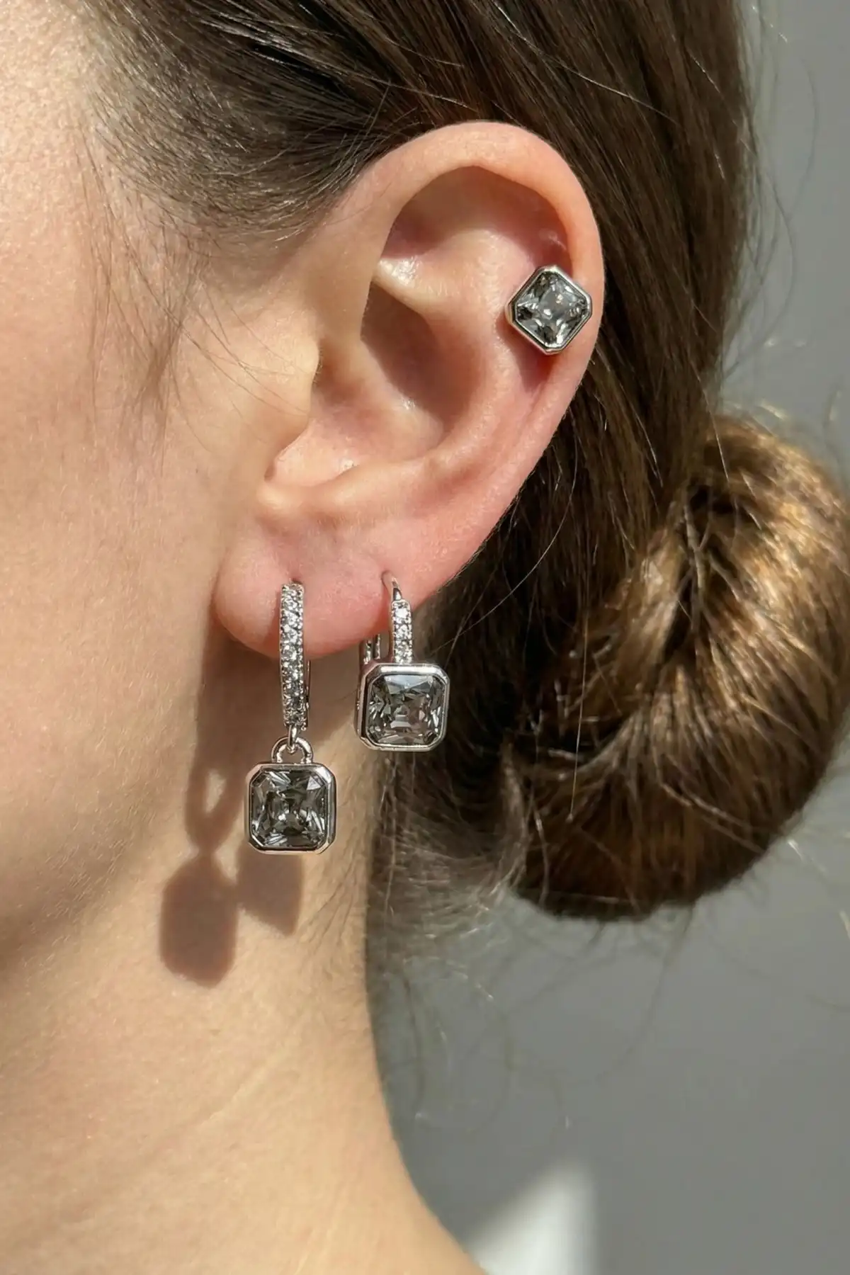 YSX 14K Altın Kaplama Kare Taş Detaylı Sallantılı Küpe