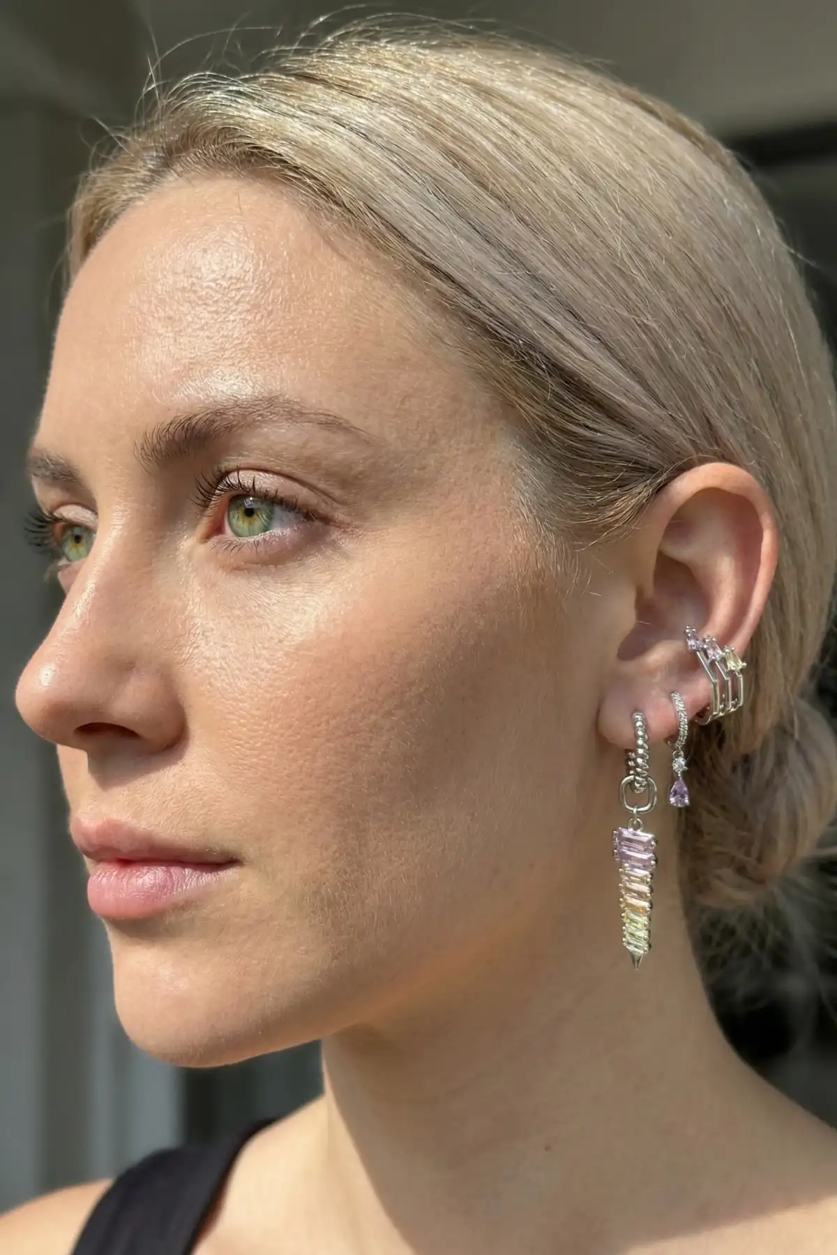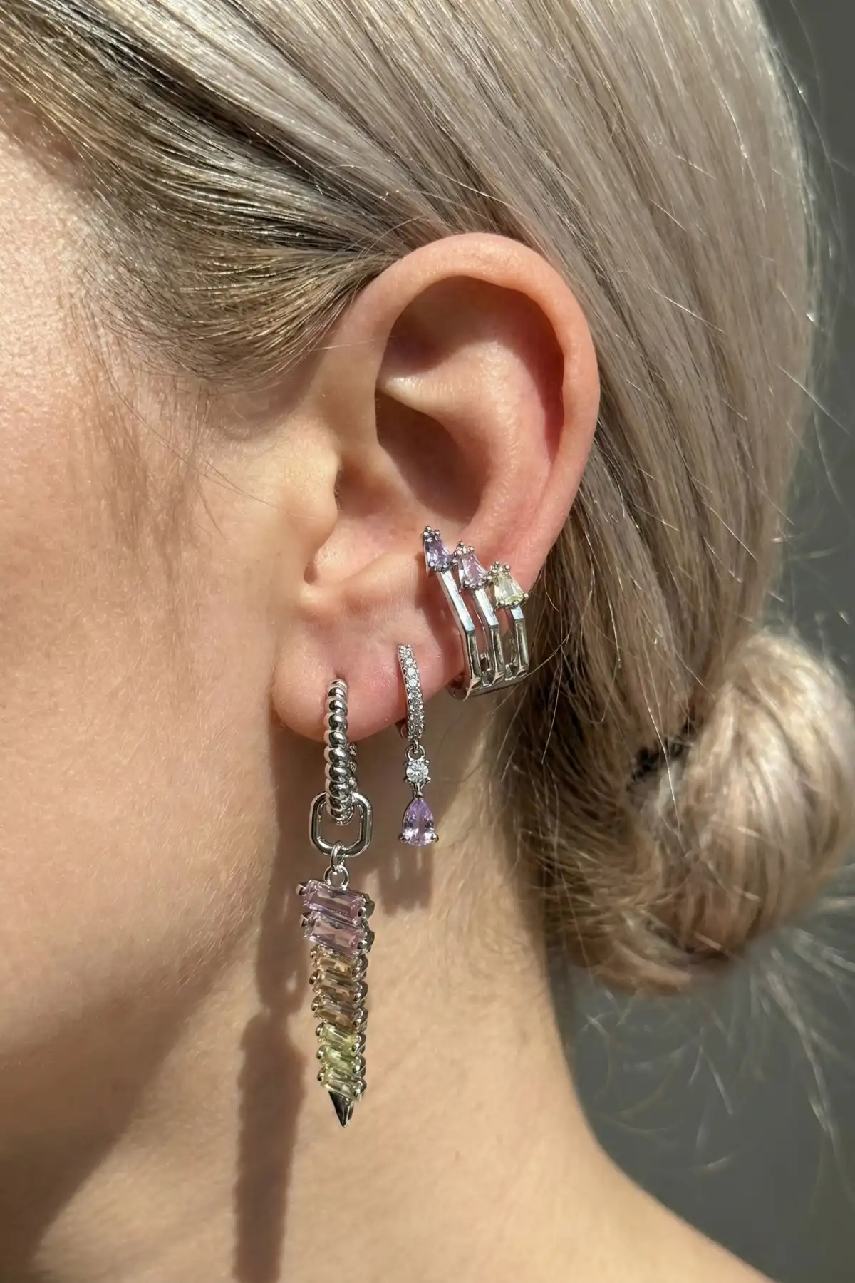YSX 14K Altın Kaplama Ametist Renk Zirkon Taşlı Sallantılı Küpe
