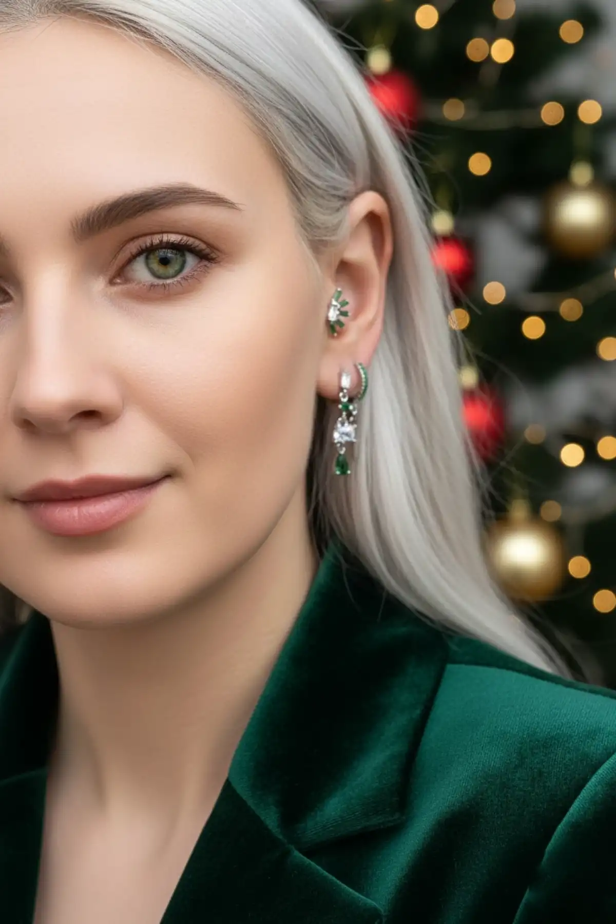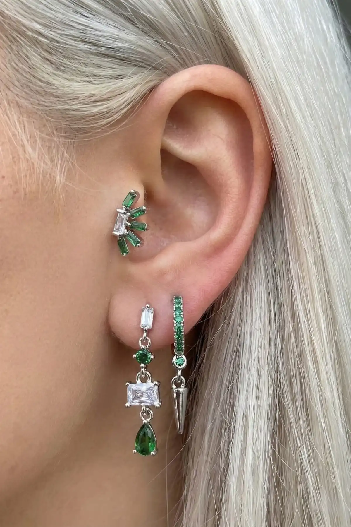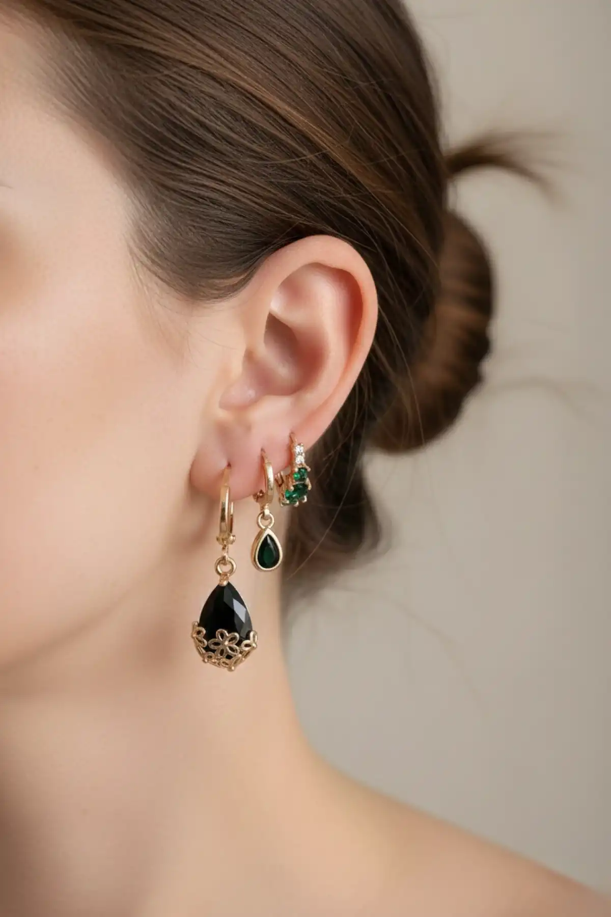 YSX 14K Altın Kaplama Zümrüt Renk Zirkon Taşlı Sallantılı Küpe