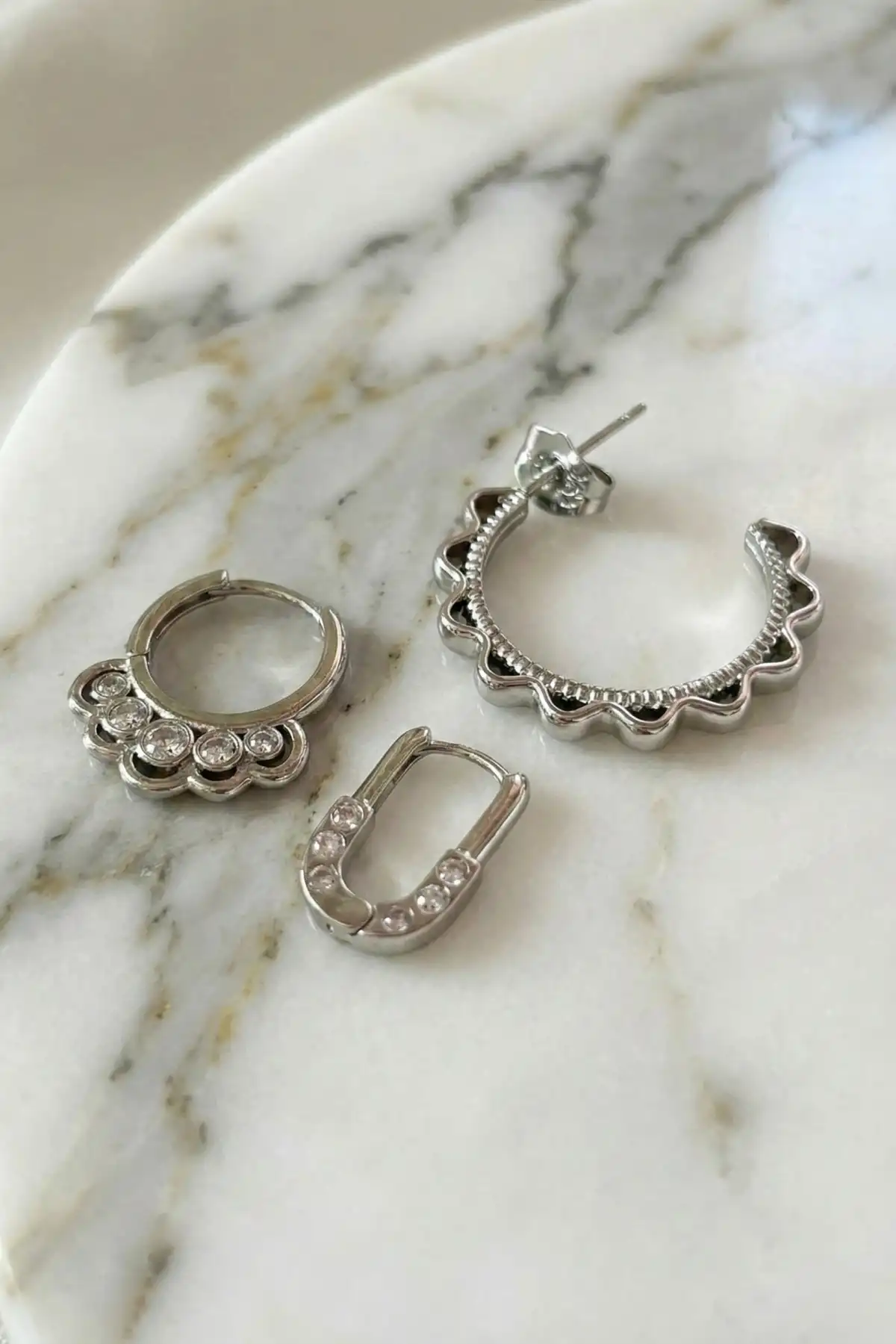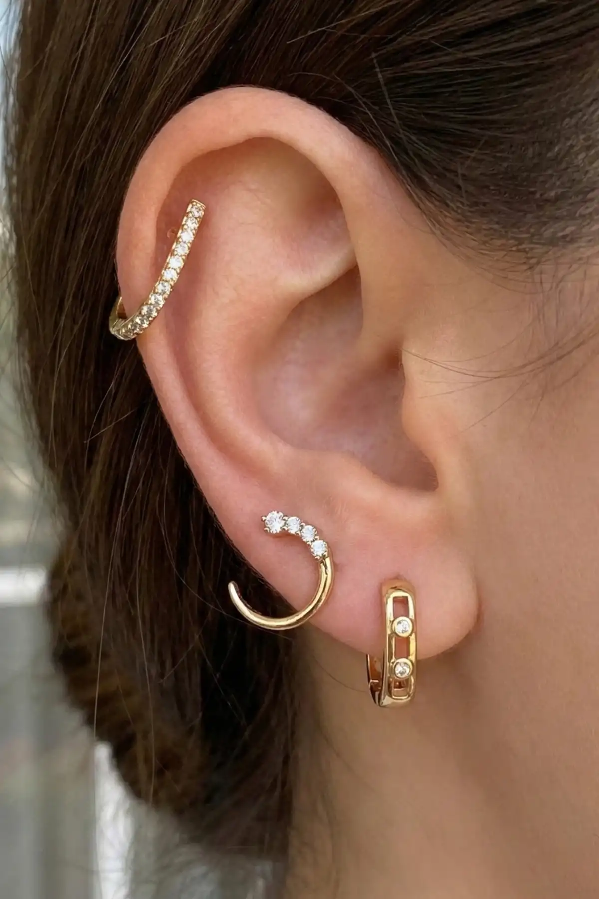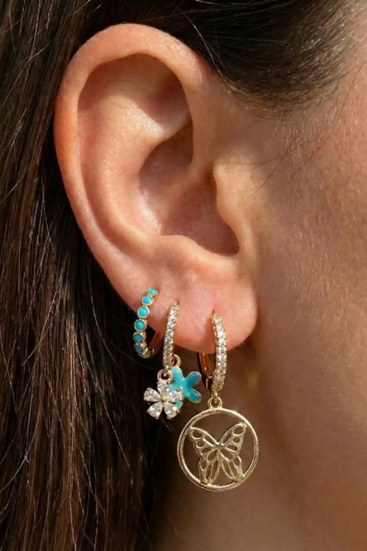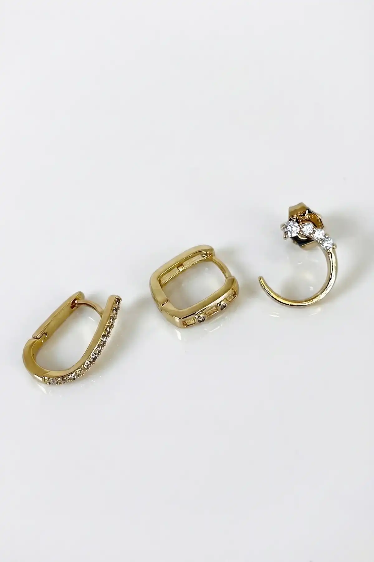 YSX 14K Altın Kaplama Halka Form Çoklu Küpe Seti