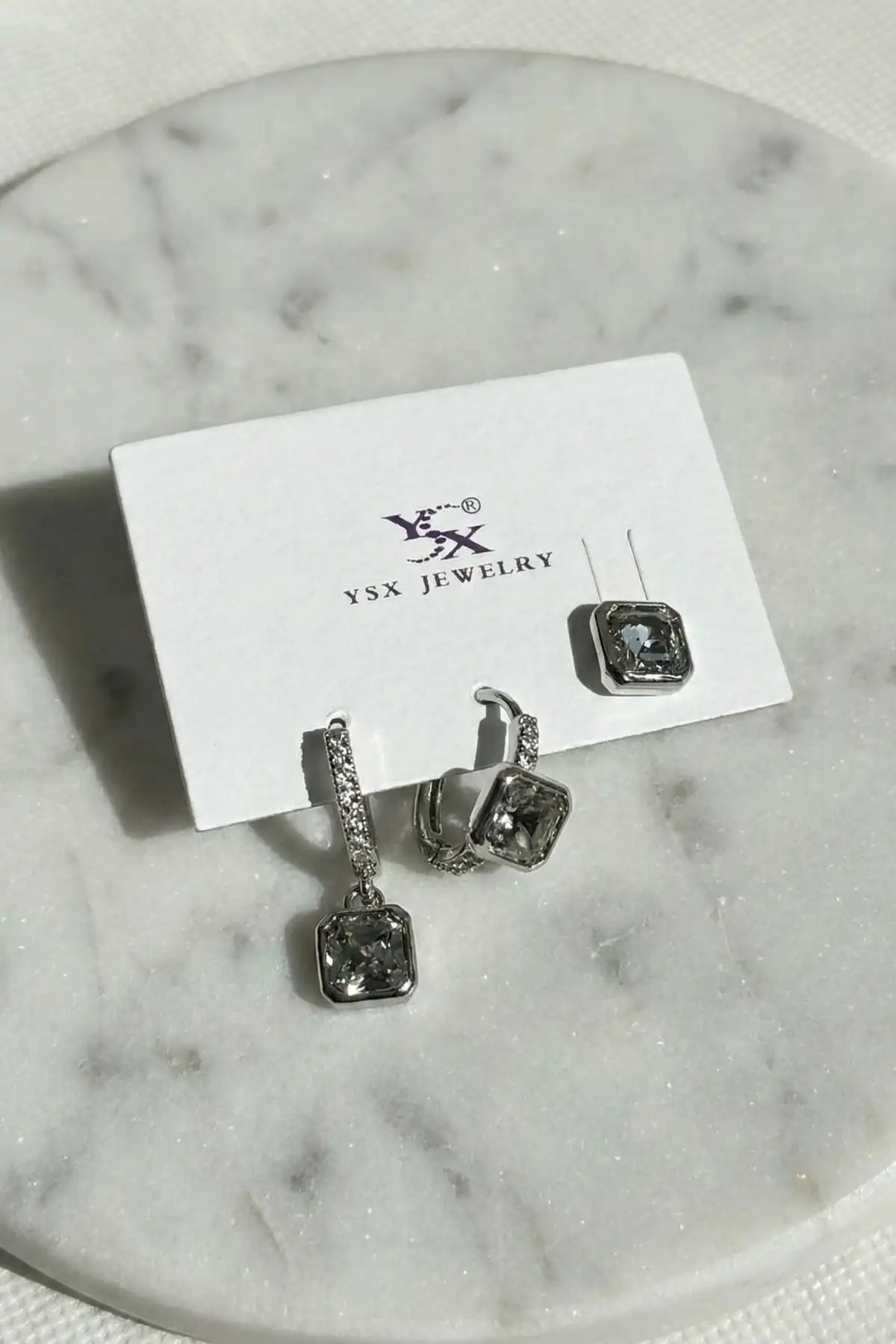 YSX 14K Altın Kaplama Kare Form Zirkon Taşlı Sallantılı Küpe