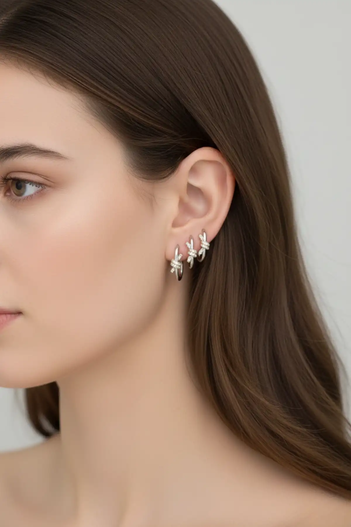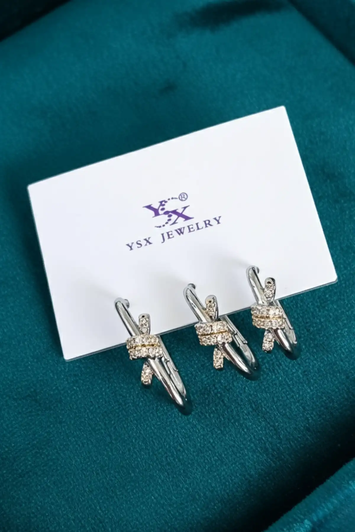 YSX 14K Altın Kaplama Zirkon Taşlı Düğümlü Halka Küpe Seti
